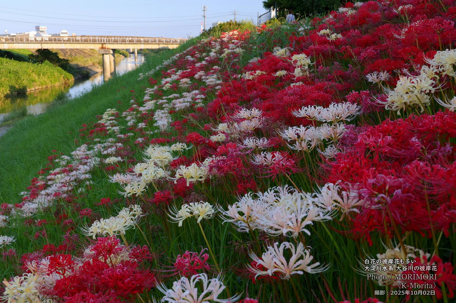 大淀川水系 大谷川堤防の紅白の彼岸花