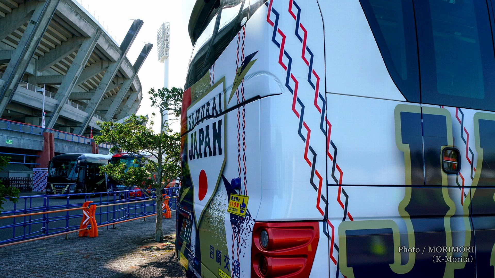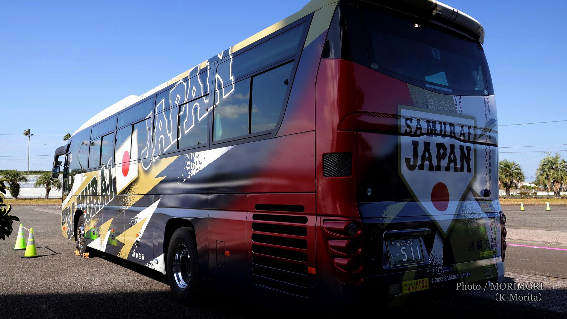 SAMURAI JAPAN ラッピングバス(宮崎交通)宮交シティ前にて