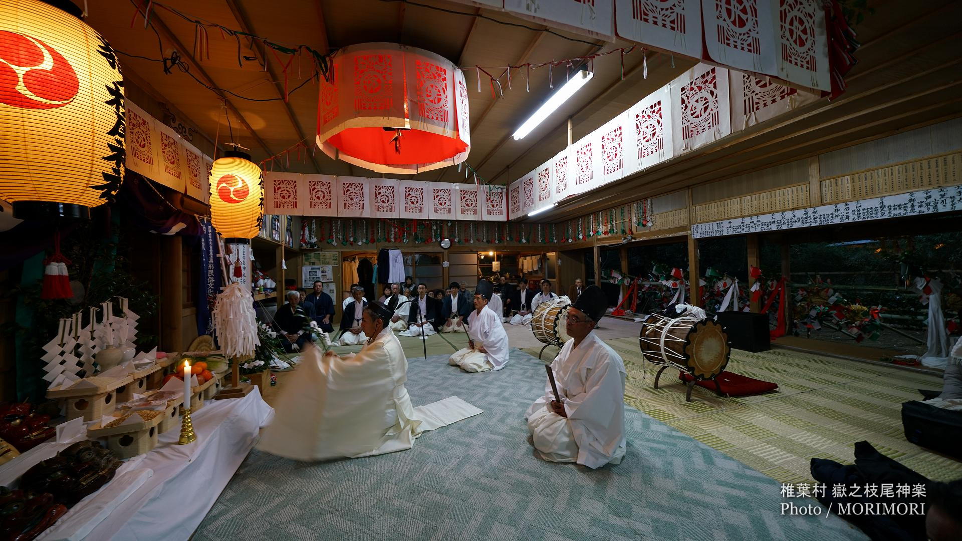 宮崎県椎葉村で「嶽之枝尾神楽(たけのえだおかぐら)」(国指定重要無形民俗文化財「椎葉神楽」の一つ)を見学しました。