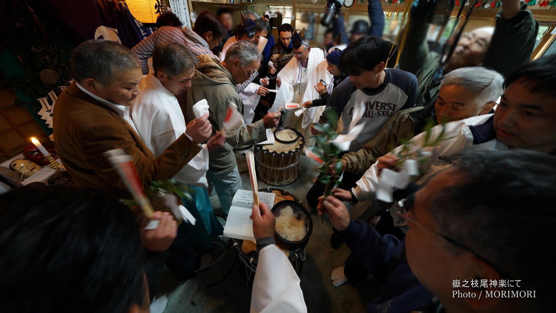 夜神楽では、焼酎2〜3升、または現金3,000円〜程度を「初穂料」として包んだものを奉納するのが慣例です。