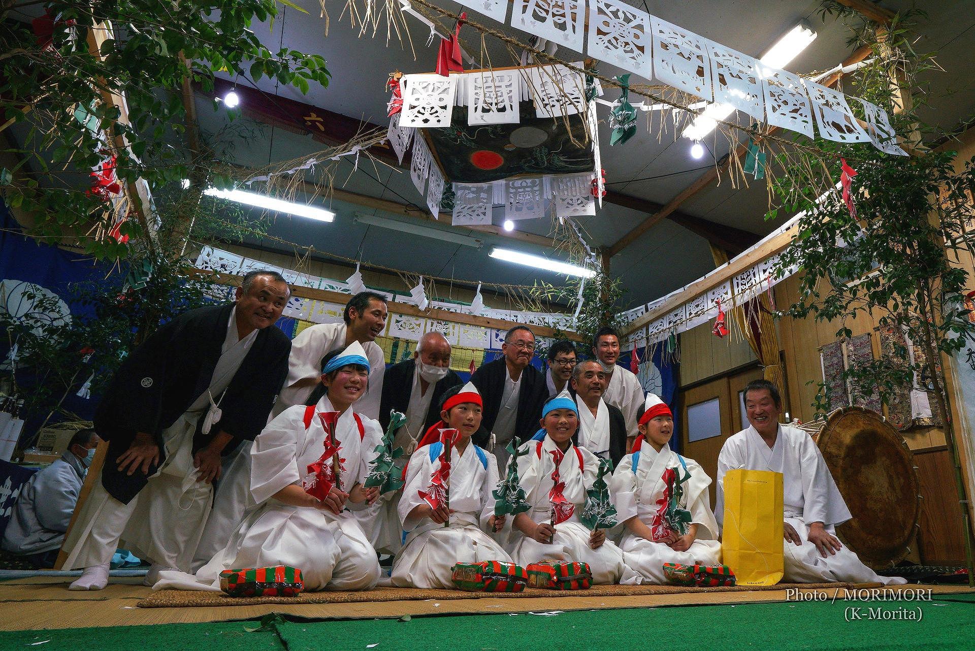 最後に、指導した古戸野神楽保存会や、上組小学校の先生達と記念撮影です。