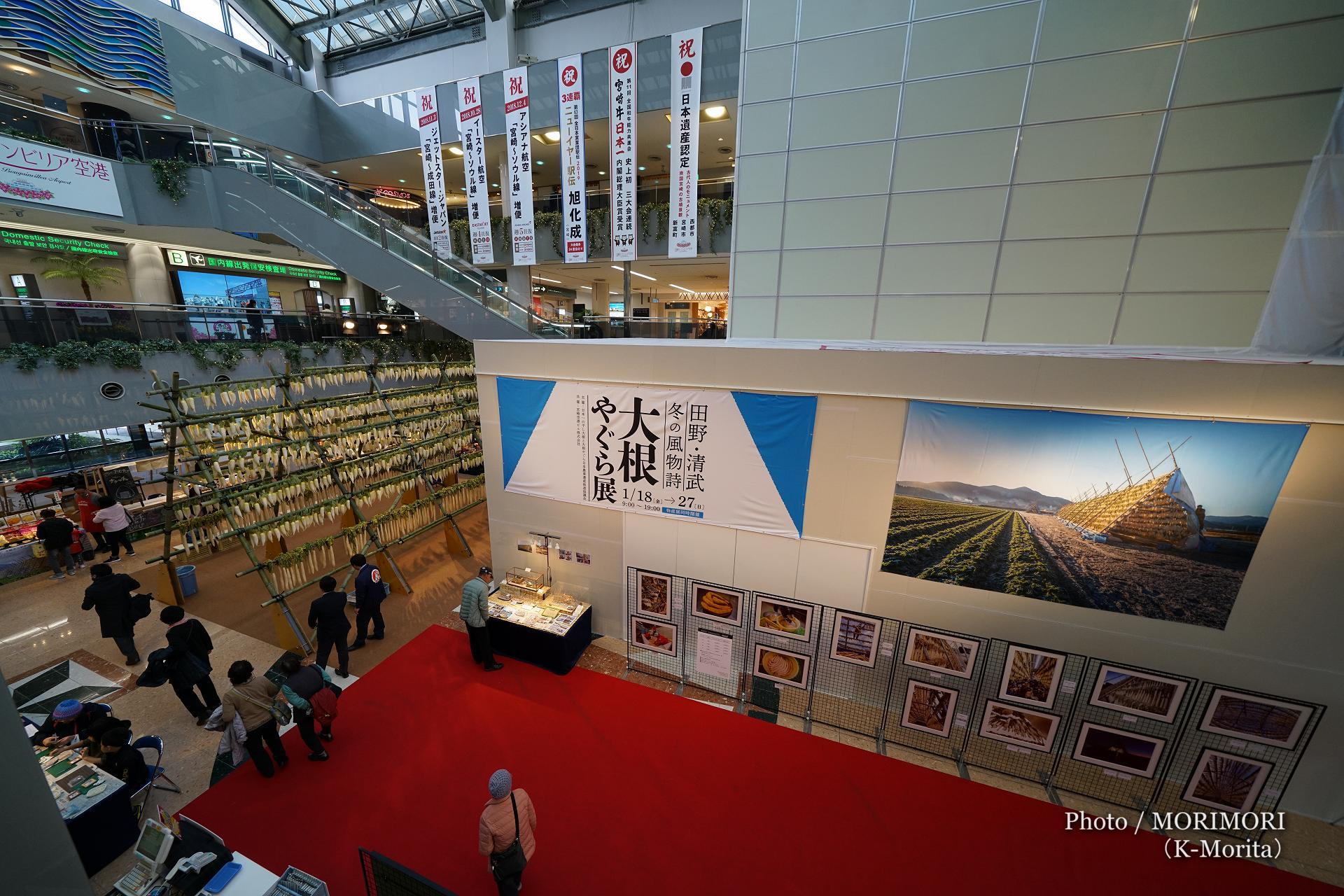先日より、宮崎ブーゲンビリア空港のオアシス広場で、田野・清武 冬の風物詩 大根やぐら展が開催されており、大根櫓(ダイコンやぐら)のコンパクト版が設置してあります。
