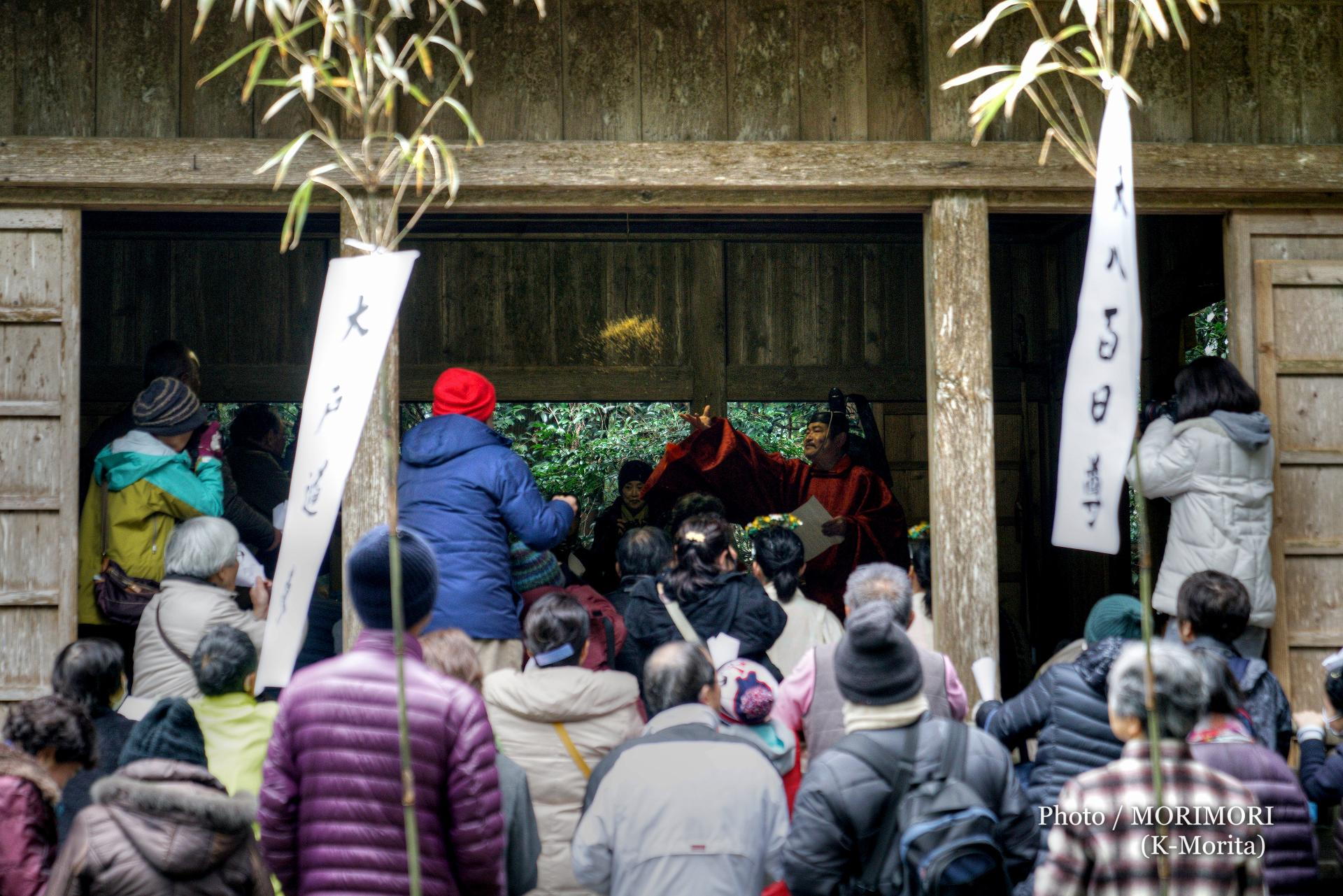 日南市北郷町鎮座 潮嶽神社(佐師正朗宮司)の春大祭では、種もみをまいて豊作と豊漁を祈願する「福種下ろし」や「潮嶽神楽」の奉納が、毎年2月11日の建国記念の日に行われております。