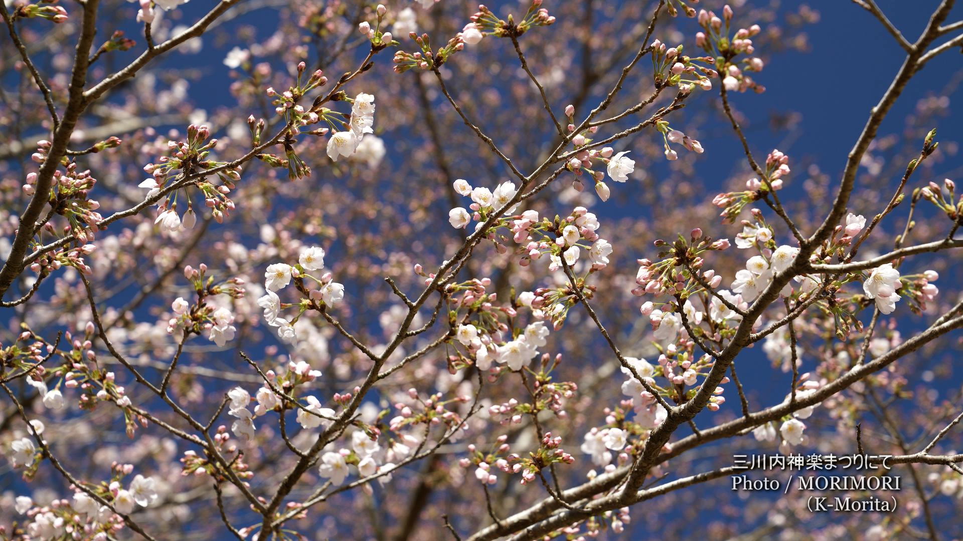 数日前、開花宣言が出た宮崎市周辺の桜は、まだ殆んど咲いておりませんでしたが、県北部は開花が早く、北浦町三川内の会場の桜は、全体的に二分咲、場所によっては五分咲といった感じで、今年も神楽と共に、桜も楽しめました。三川内神楽まつりは、出店なども並び、多くの方が来場、大変賑わう祭りです。