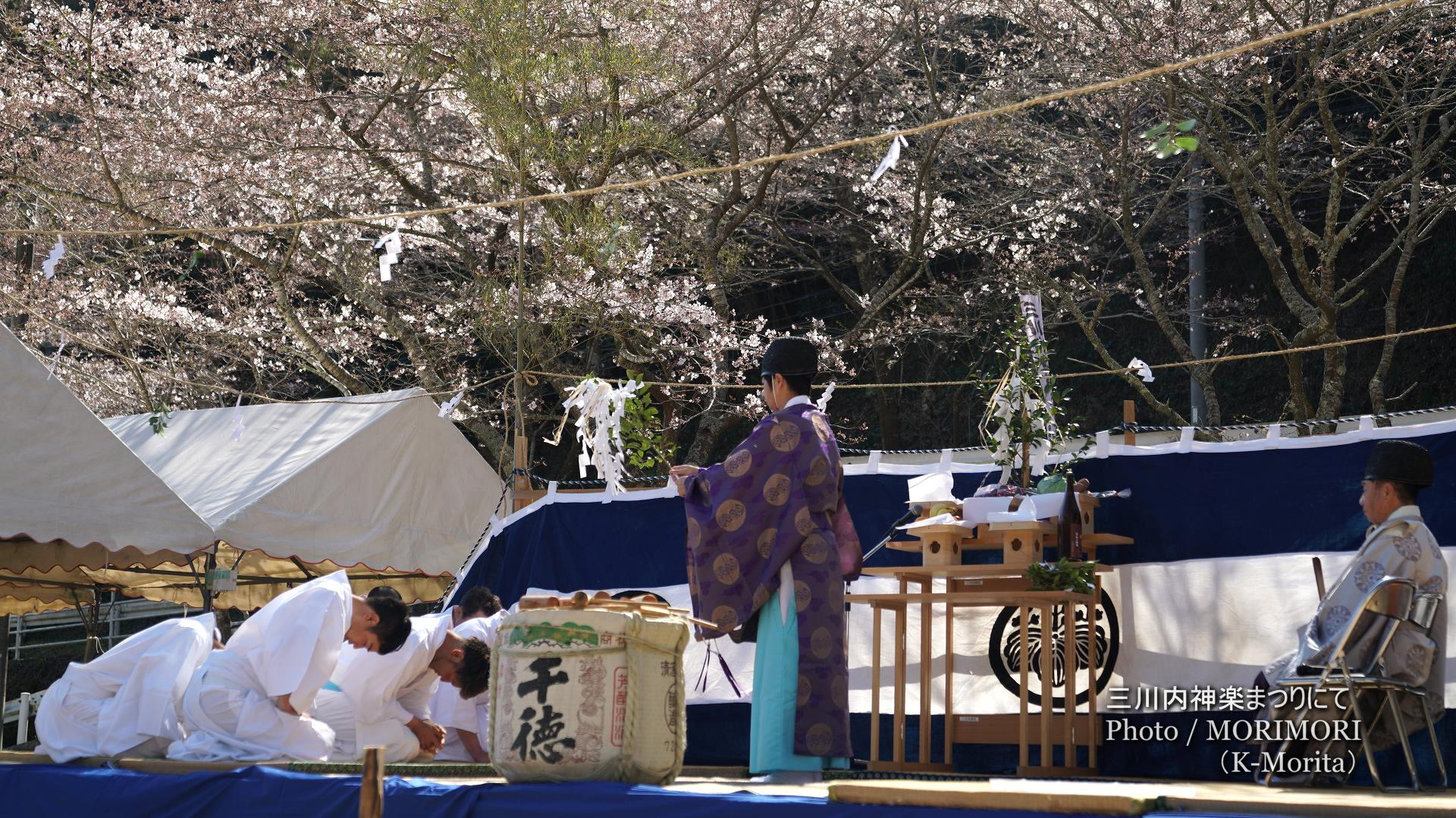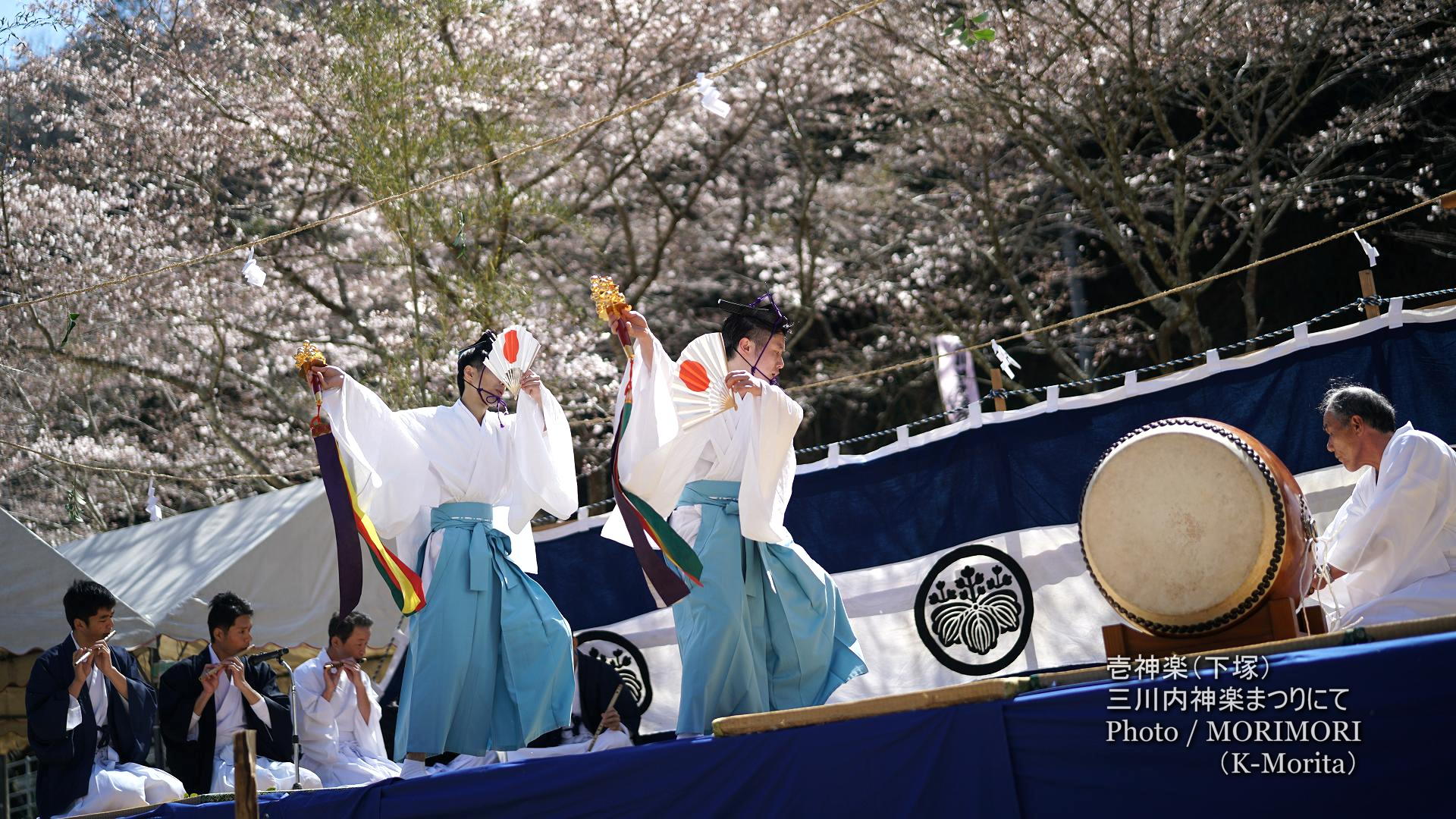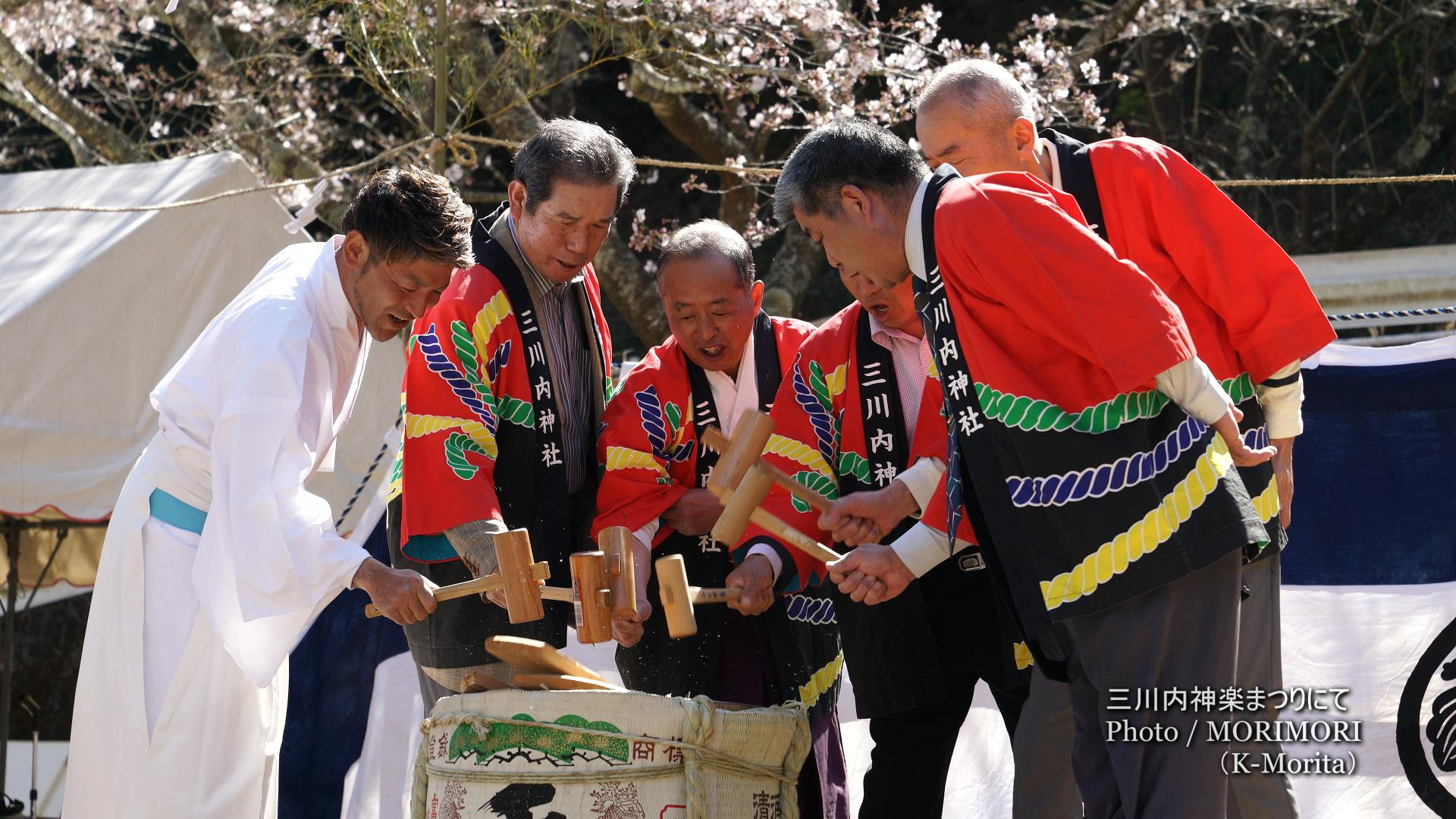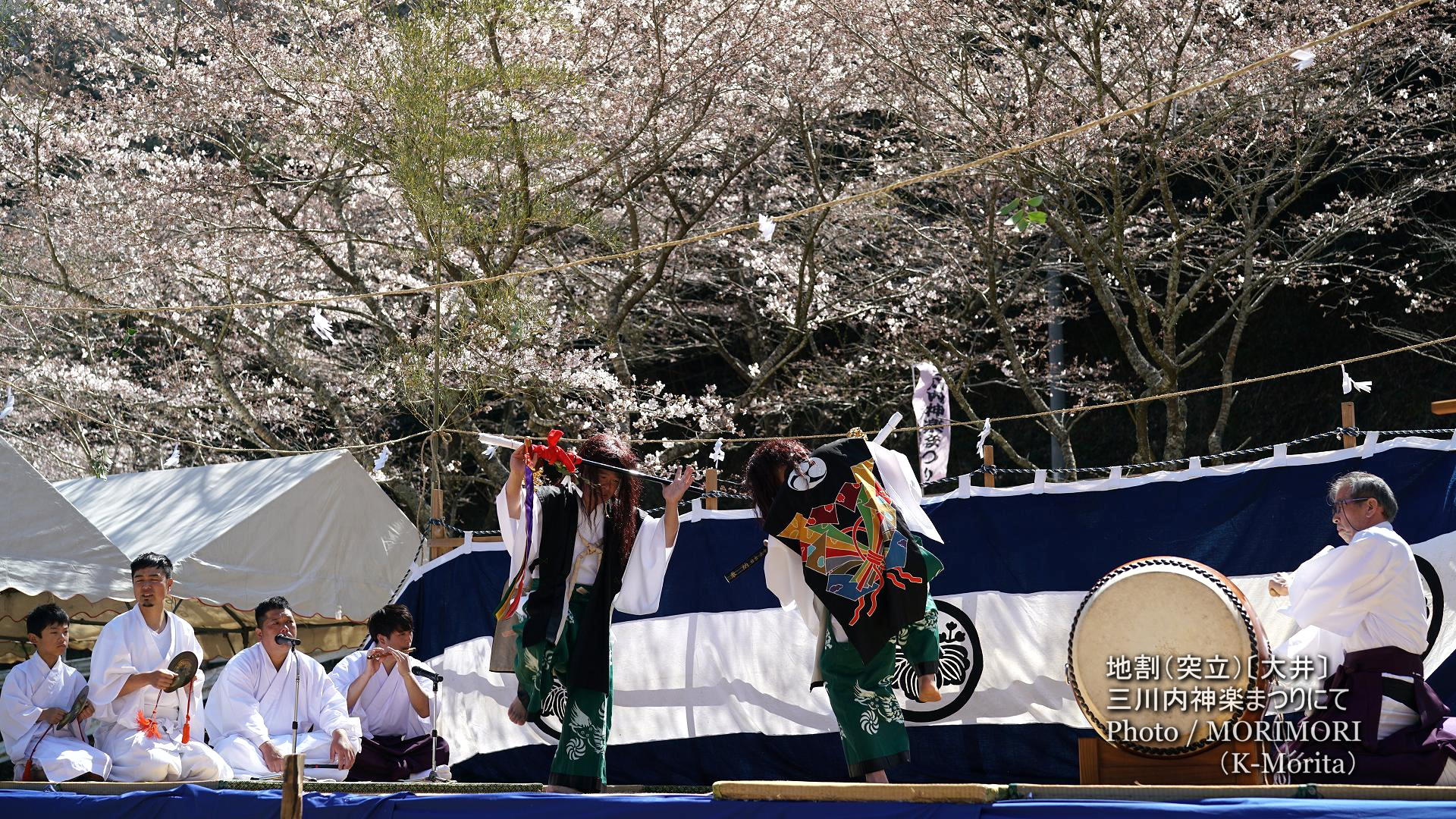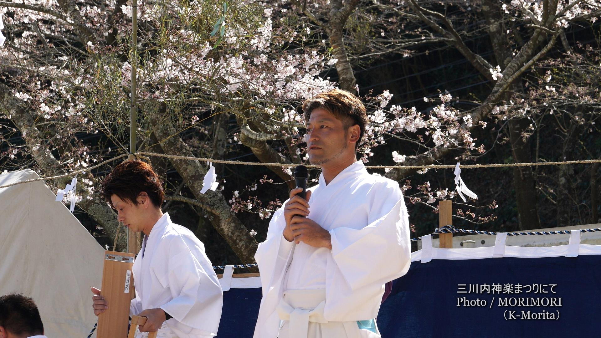 「三川内神楽まつり」は、神楽を通じて地域の活性化をはかりたい、さらにより多くの方に三川内神楽を広めたいとのと願う若者が集まり立ち上げ、桜の咲くこの時期に三川内地区の神楽が集い開催されるもので今年で6回目となります。今年は、沿岸部にある「市振神楽」も参加、約60名が18番を上演した。
