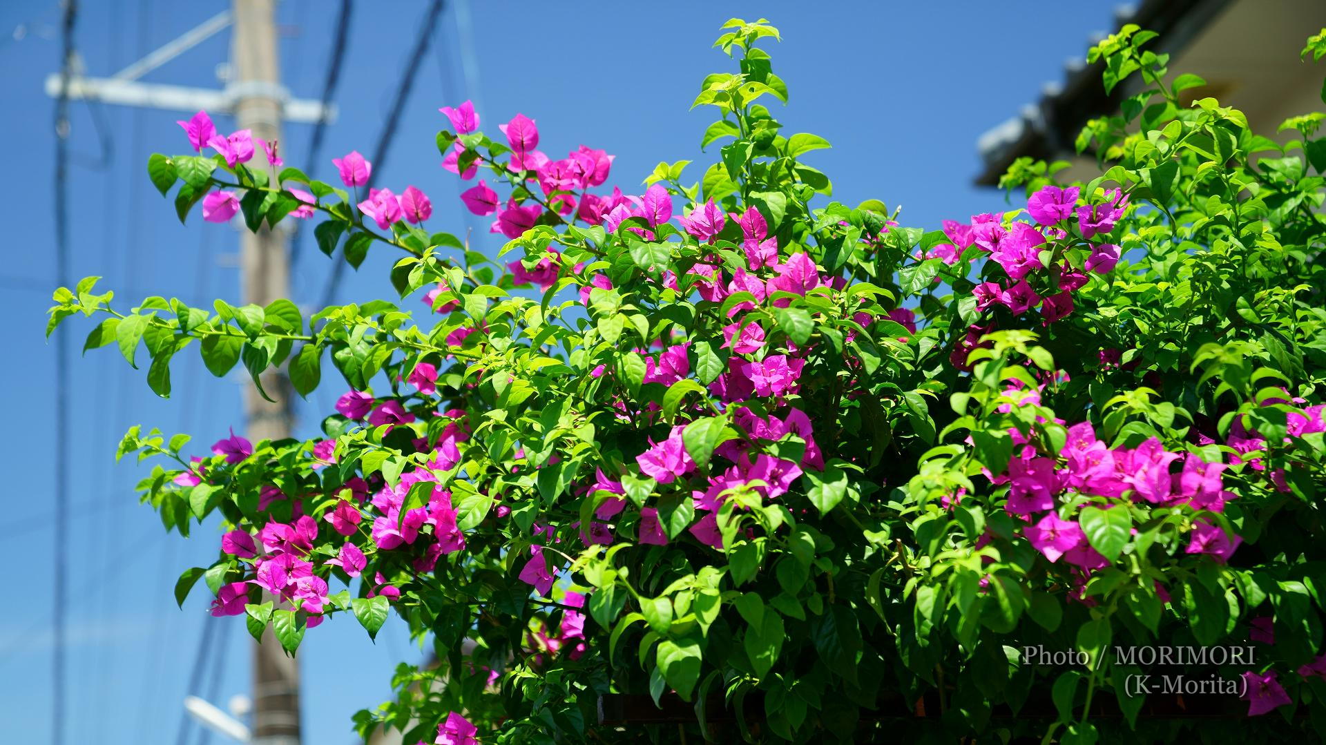 以下の写真のブーゲンビリアは、15年ほど前に、宮崎空港のこのプレゼント企画で頂いた鉢を地植えして育てているものです。