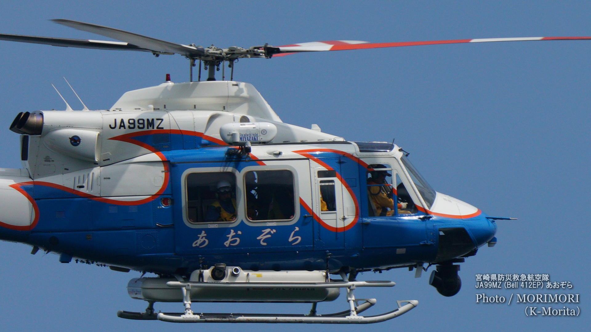 − 宮崎県防災救急航空隊のヘリコプター「あおぞら」JA99MZ(ベル412EP −