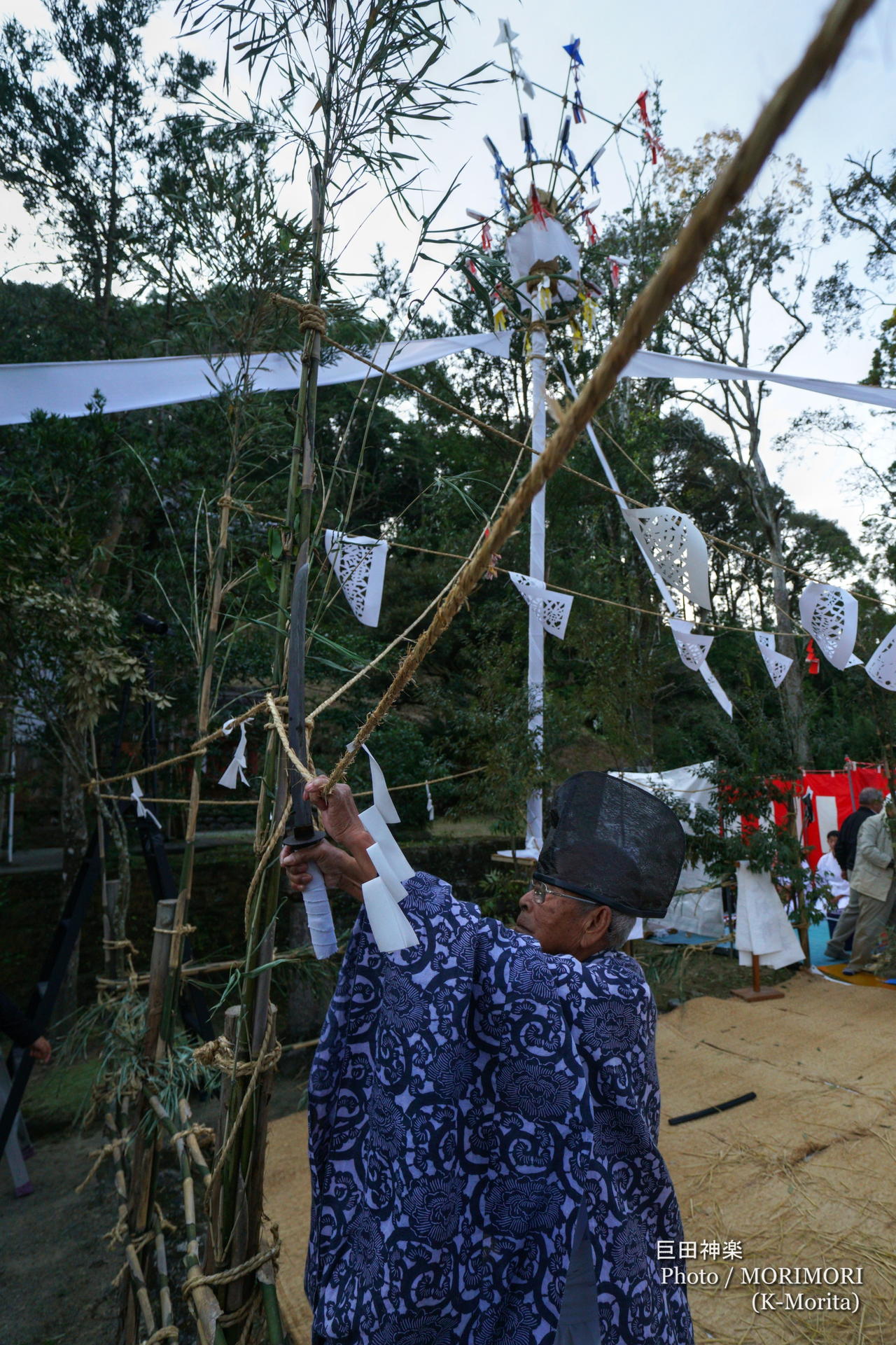 本殿が国の重要文化財に指定されている 宮崎市佐土原町の巨田(こた)神社では、毎年11月15日前の日曜に秋の例祭があり、宮崎市無形民俗文化財にも指定されている「巨田神楽」が境内に設えられた神庭で奉納されます。