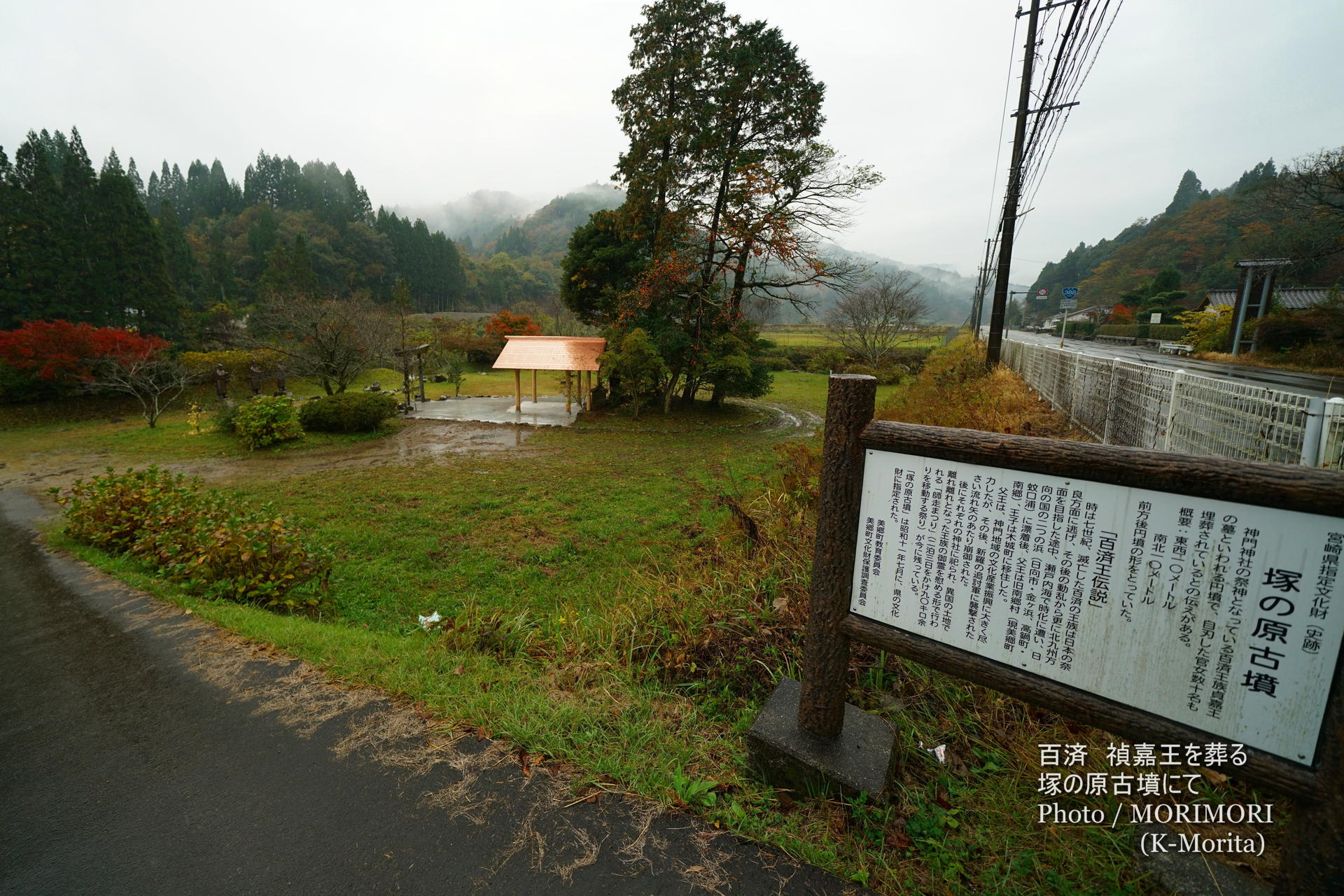 日向市東郷町から美郷町南郷区へ入り、途中、国道沿いにある、百済 禎嘉王を葬る「塚の原古墳」に立ち寄った。