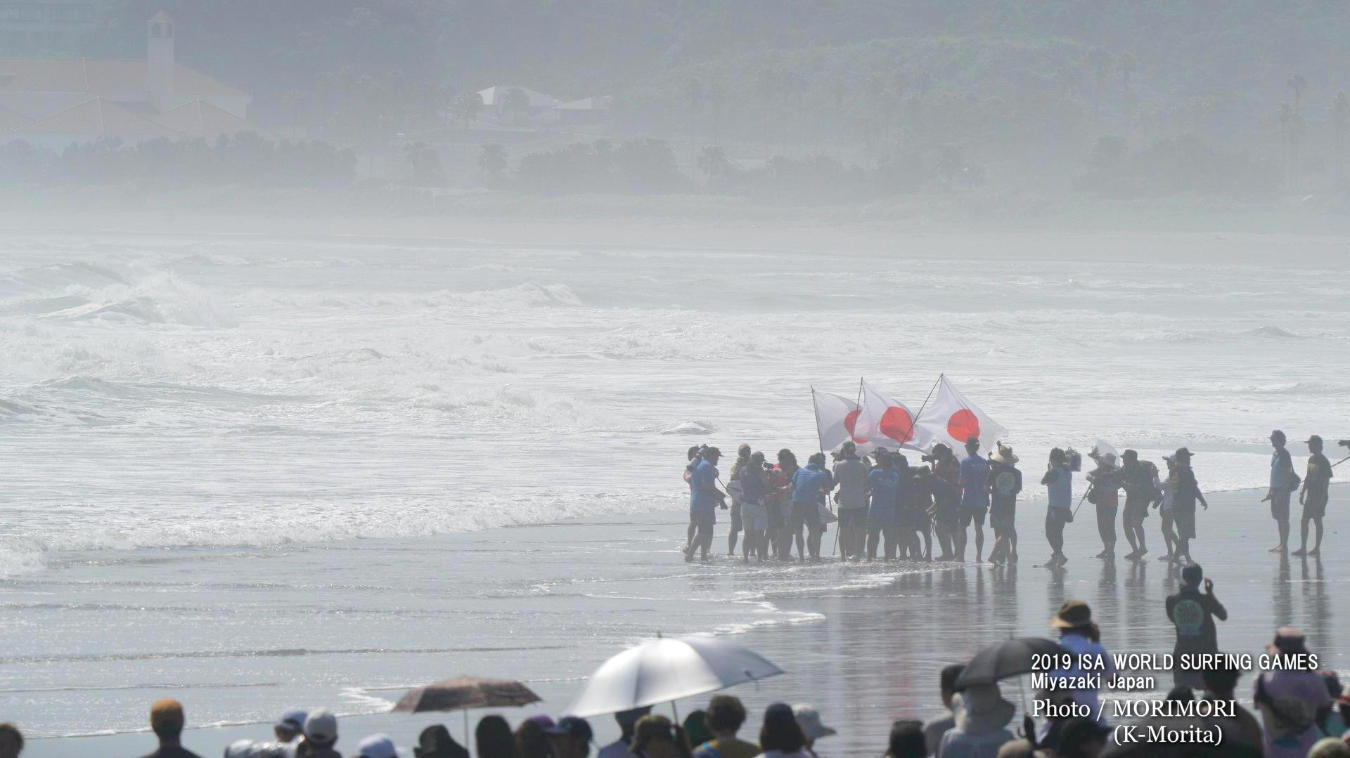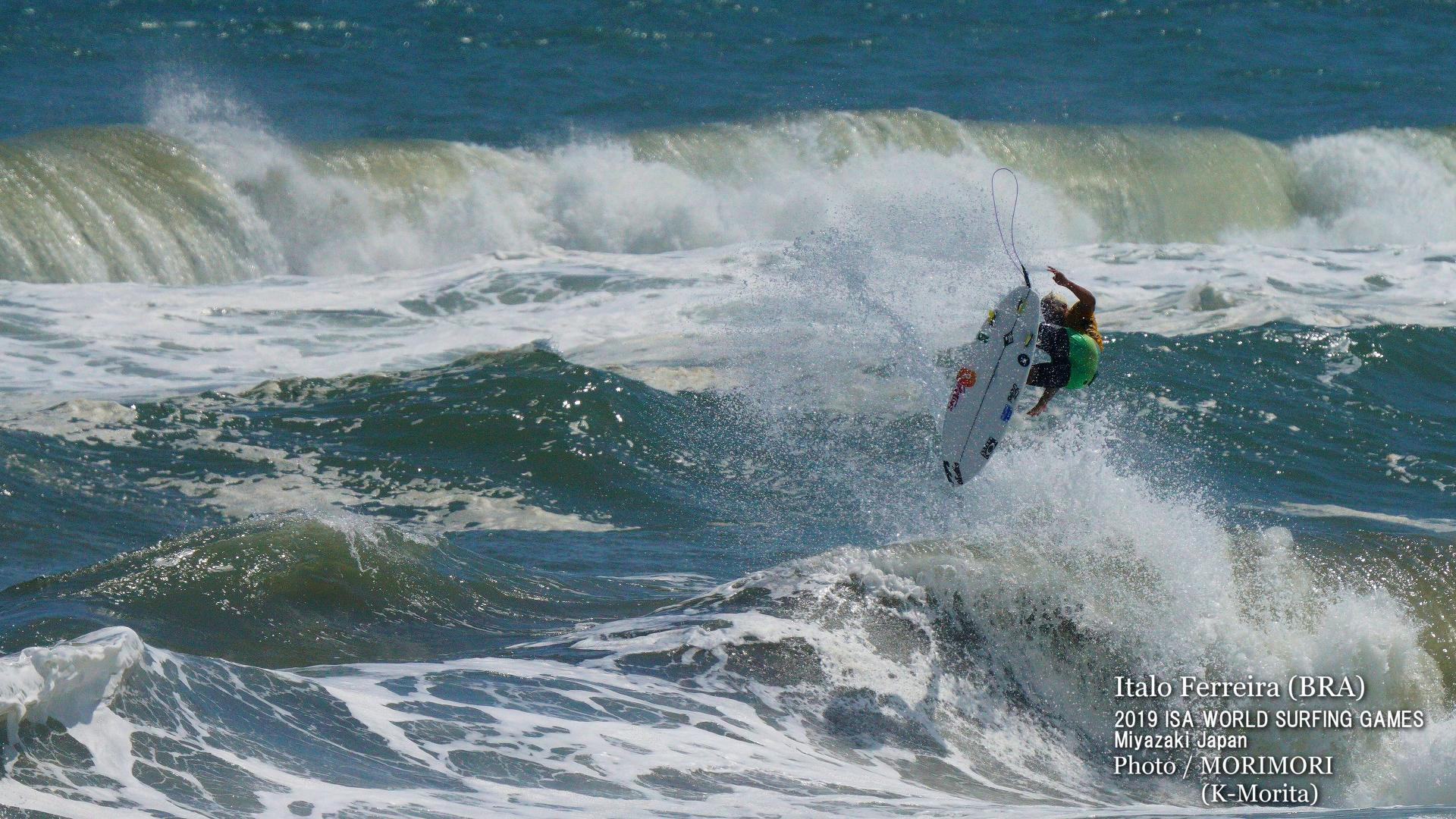 2019年 宮崎県宮崎市木崎浜で行われていた、サーフィンの世界選手権「ISAワールドサーフィンゲームス」は、55カ国・地域から240人が出場、大会9日目の15日(日) 最終日の写真です。男子優勝 ブラジル代表 イタロ・フェレイラ選手