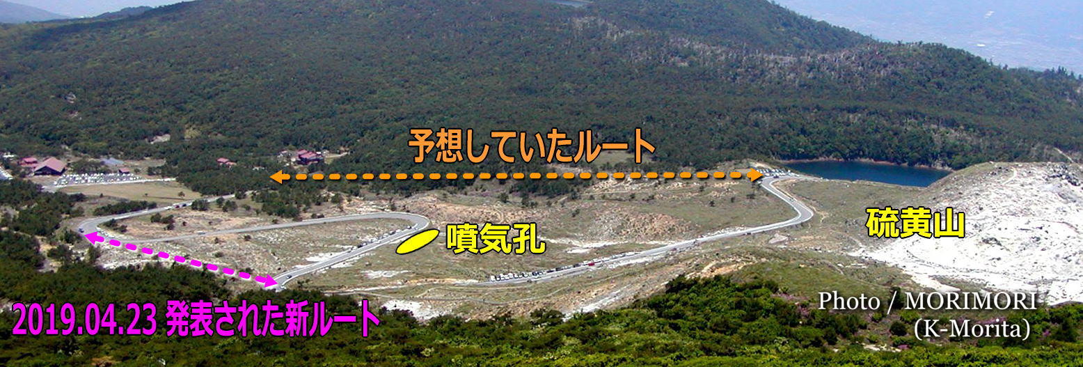 素人の私が考えるに、これから先の硫黄山周辺の噴火活動、今回噴出した噴気孔の位置、火山ガス滞留などを考えると、将来的に一番安心なのは、不動池横の駐車場付近から一帯をショートカットする一番北側のルートが安心なのでは? と思っていただけに、意外な発表でした。