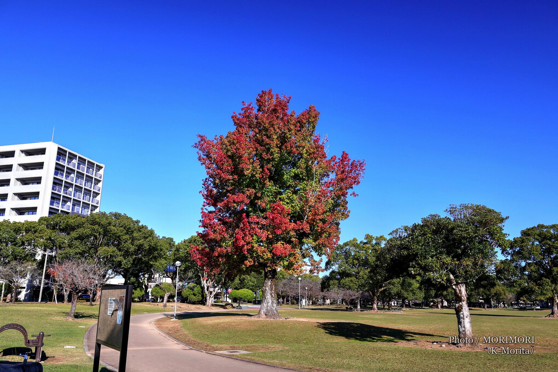− 宮崎県総合文化公園 モミジバフウの巨木の紅葉 (2025年11月23日) −
