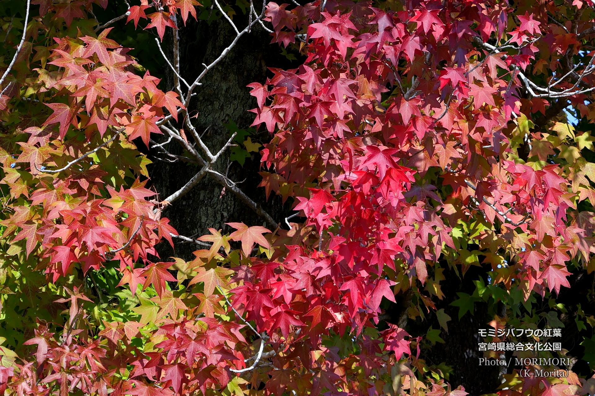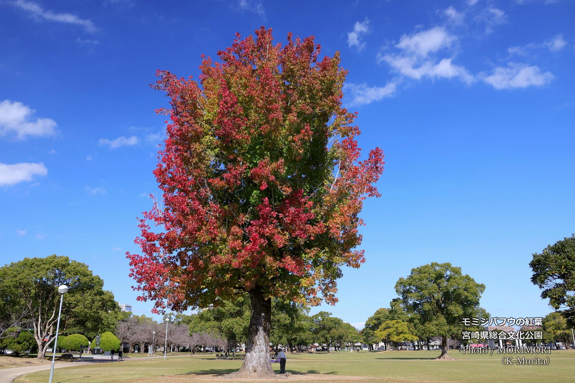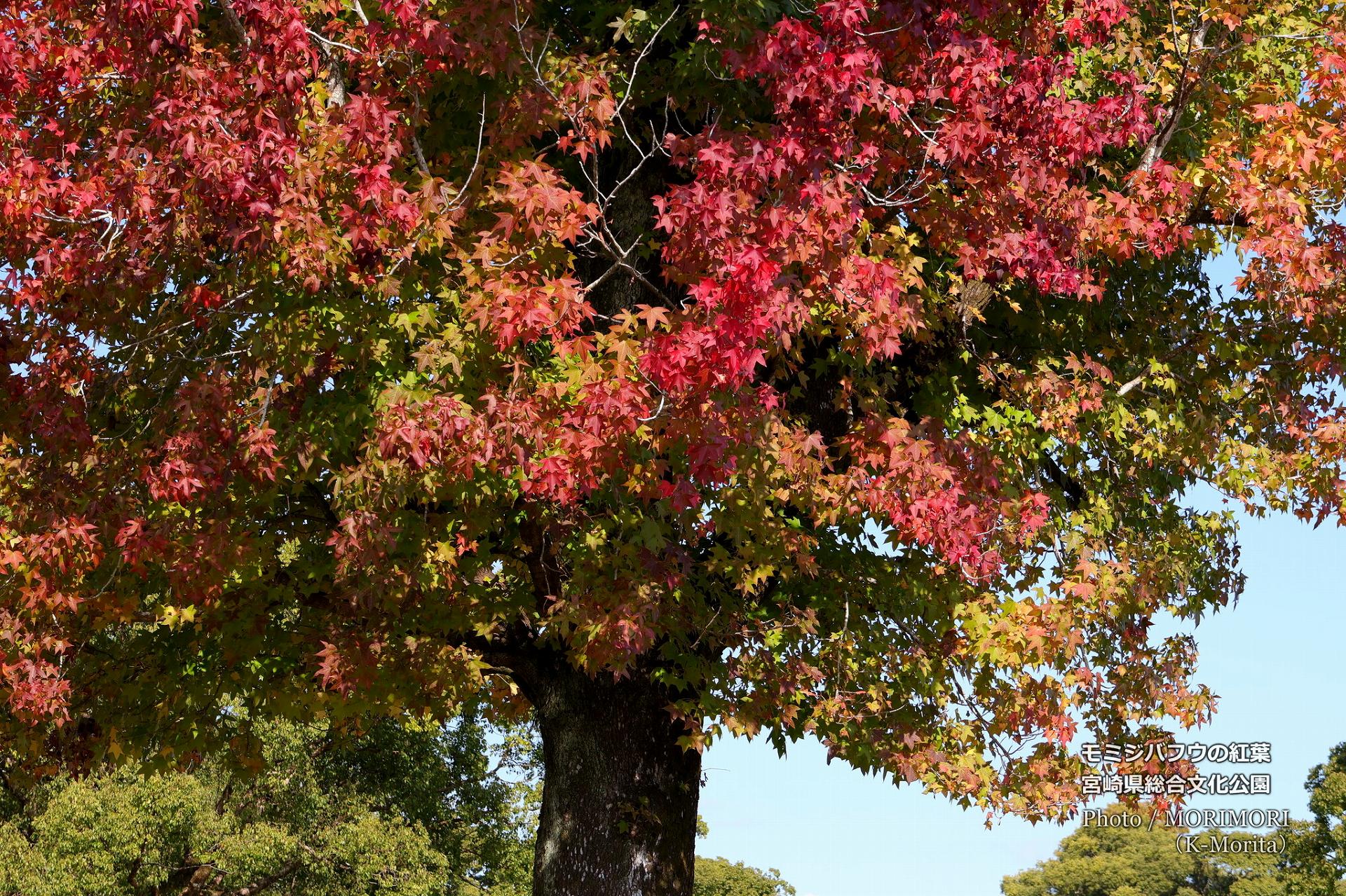 宮崎県総合文化公園 モミジバフウの巨木の紅葉