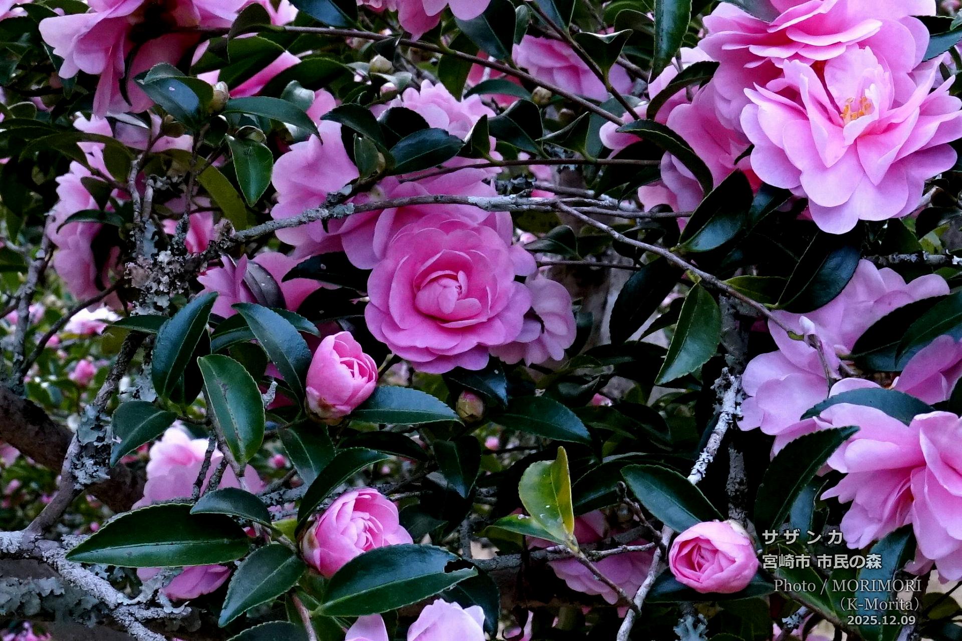 − 阿波岐原森林公園 市民の森でピンク色のサザンカが満開でした。 −