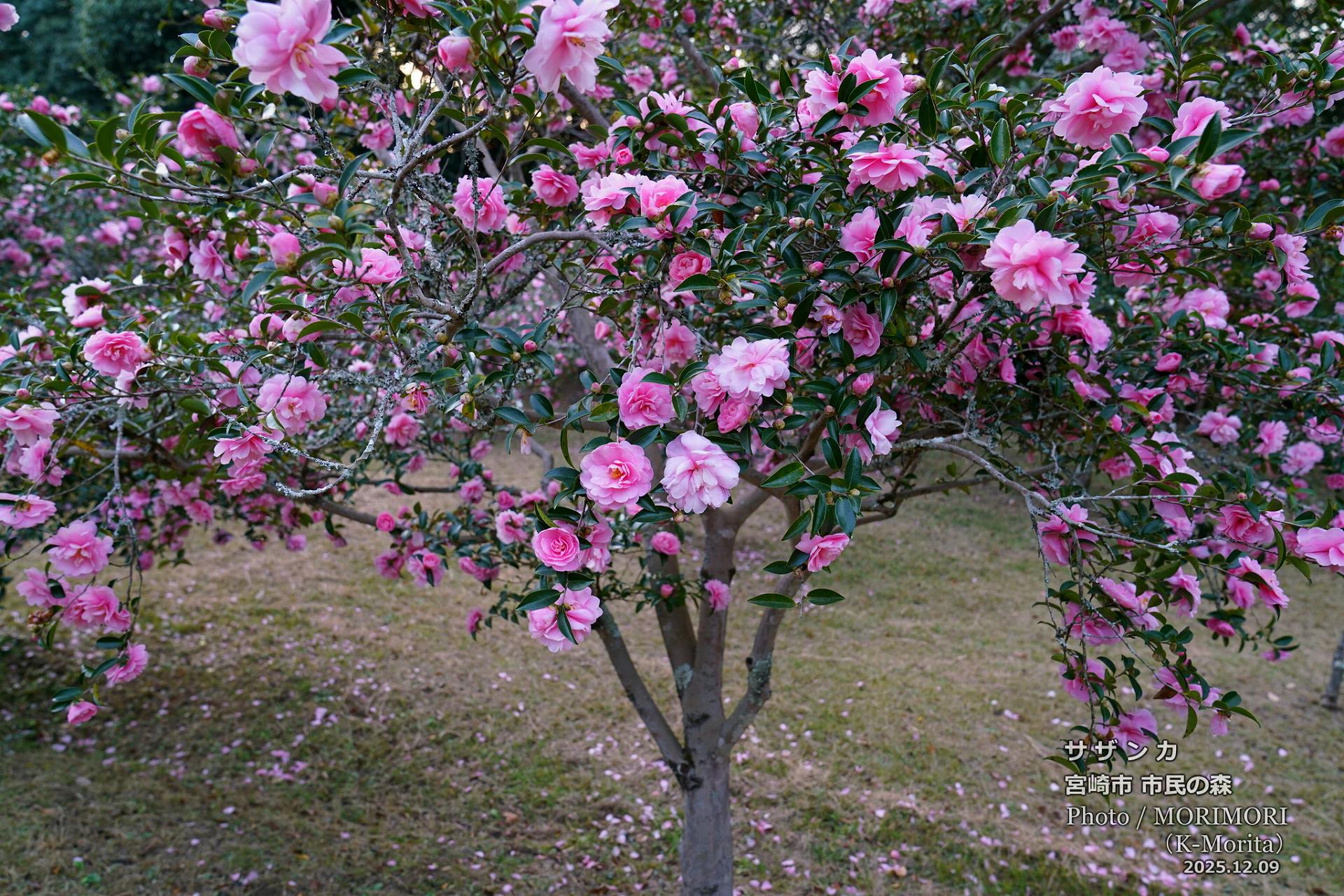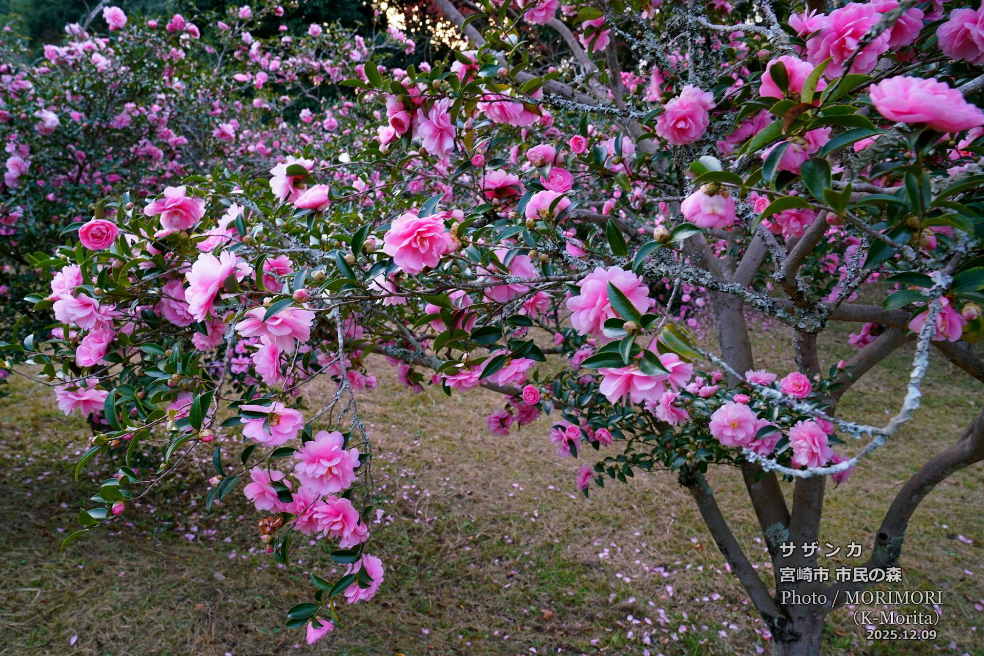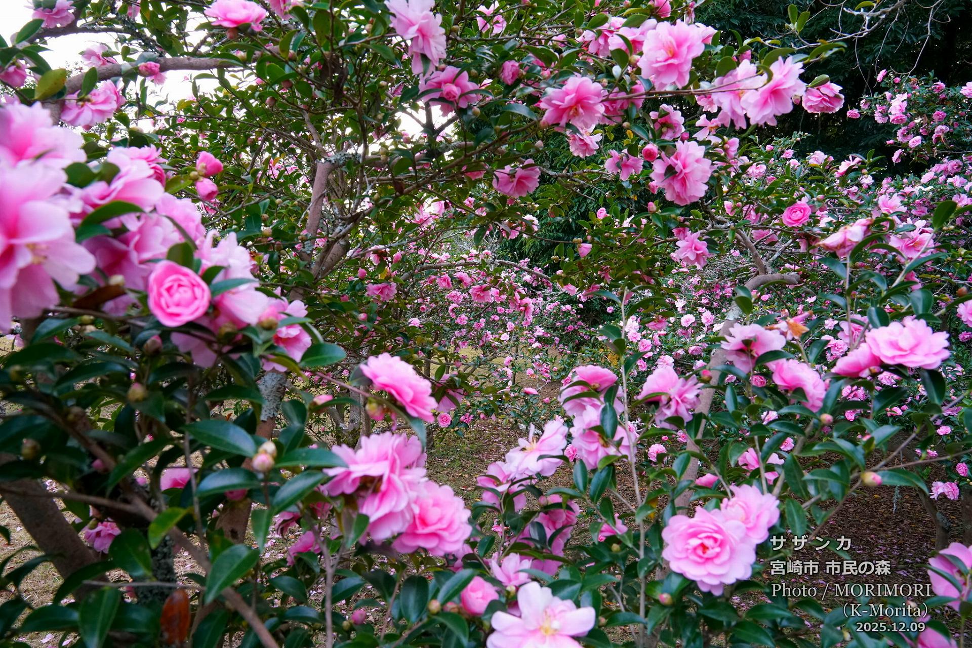 阿波岐原森林公園 市民の森でピンク色のサザンカが満開でした。
