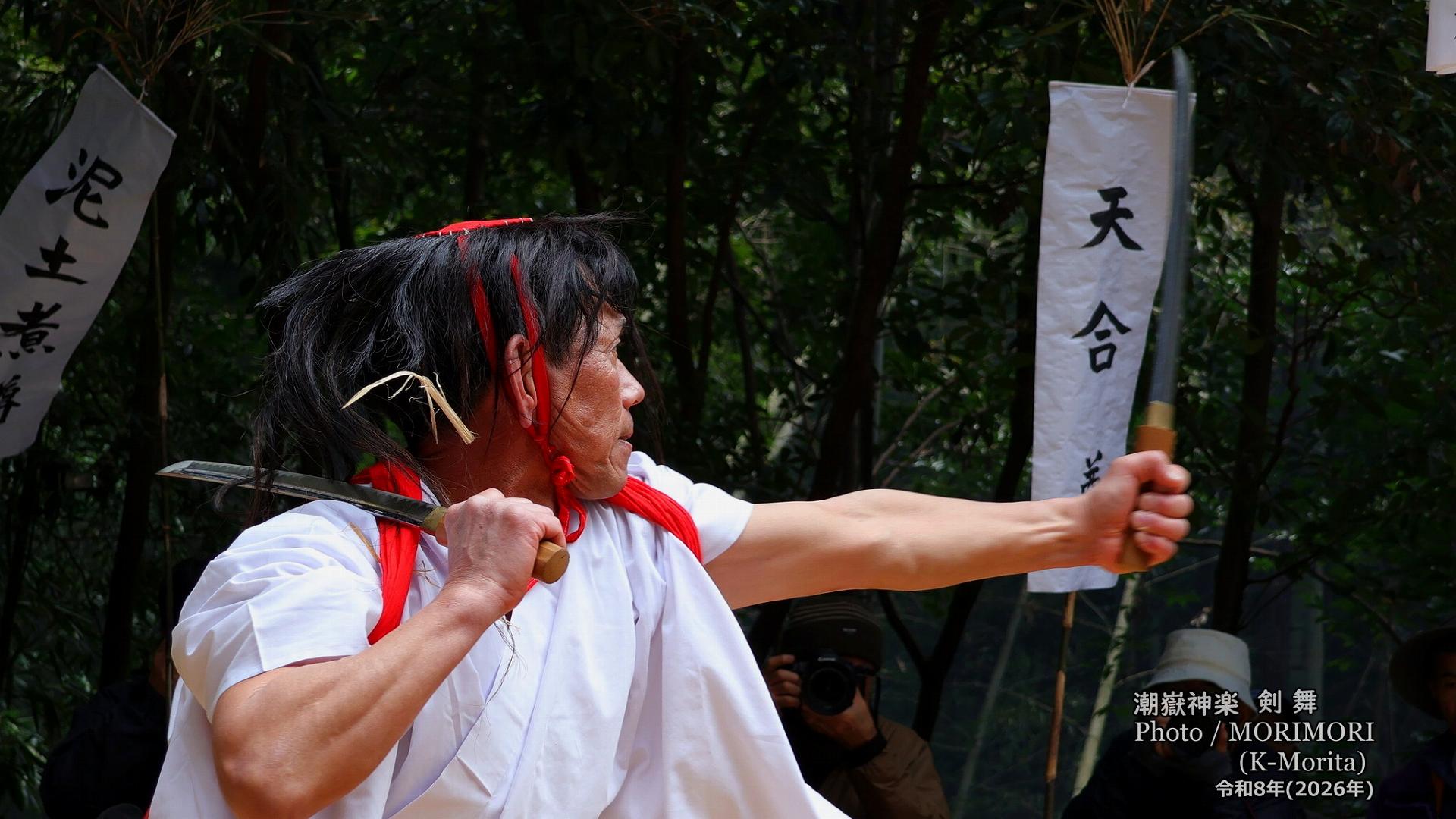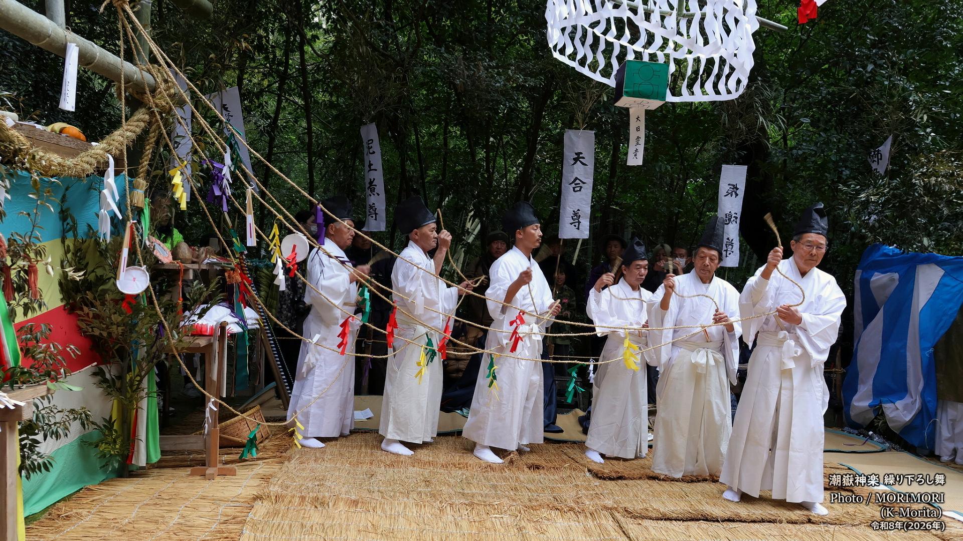 潮嶽神楽の起源については不明のようですが、文化3年(1506年)鵜戸神宮御遷宮にあたり奉納された36番の番付の記載が『潮嶽神社神事宝典』に残る。