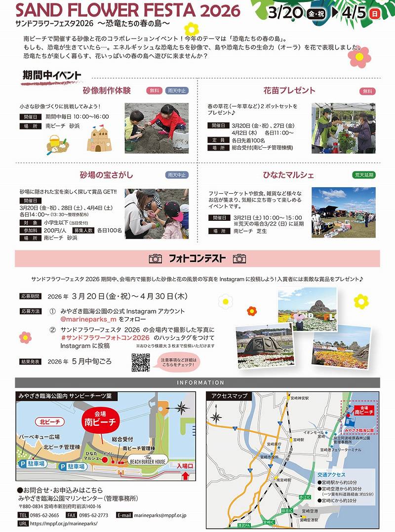 − サンドフラワーフェスタ2026 今年のテーマは「恐竜たちの春の島」 −