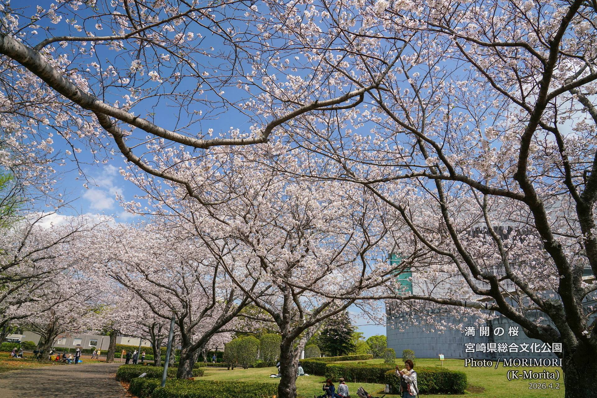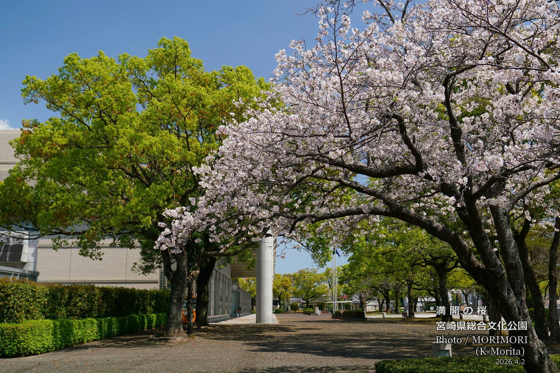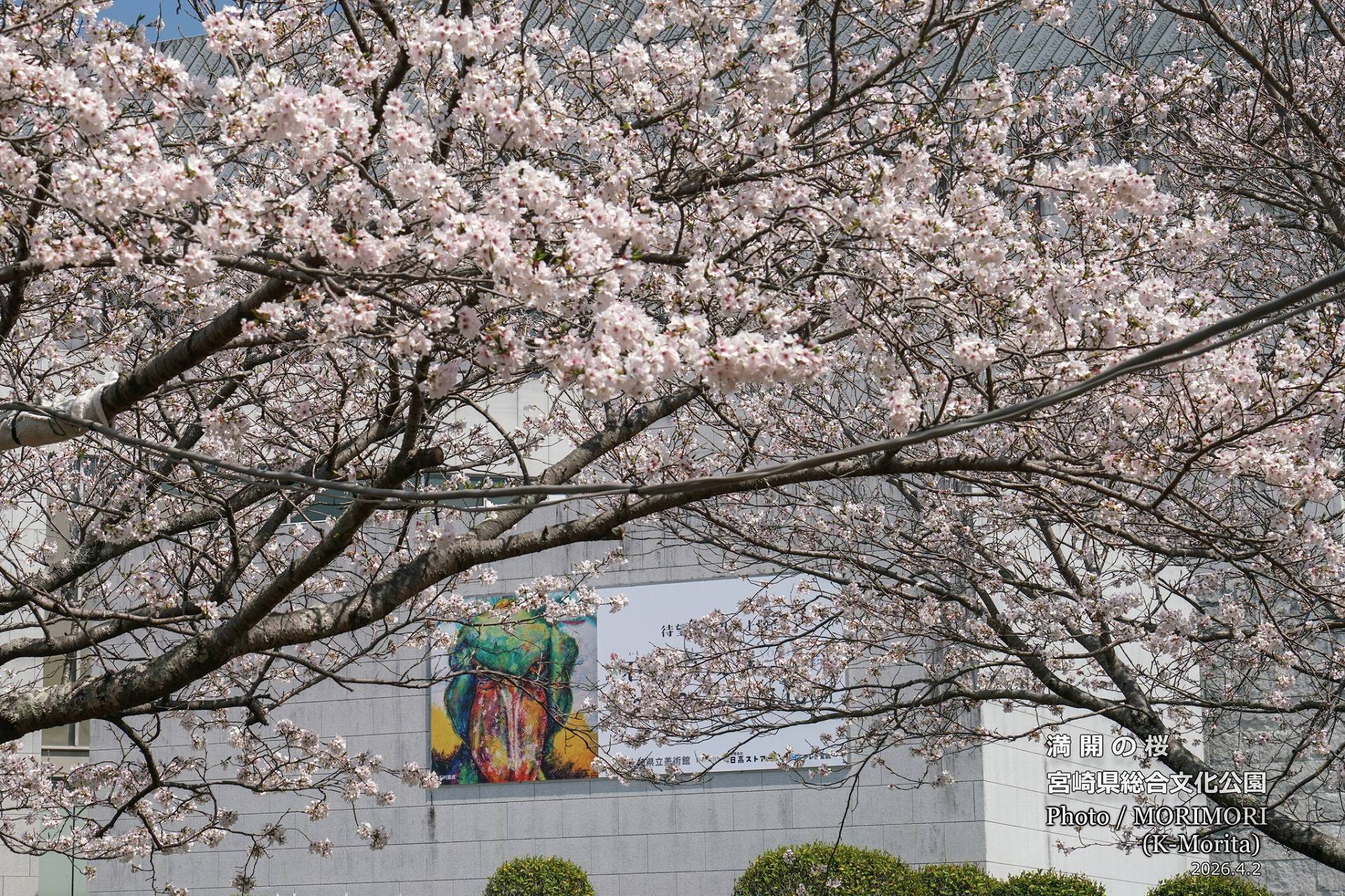 宮崎県立総合文化公園 県立美術館付近の満開の桜 (宮崎市)