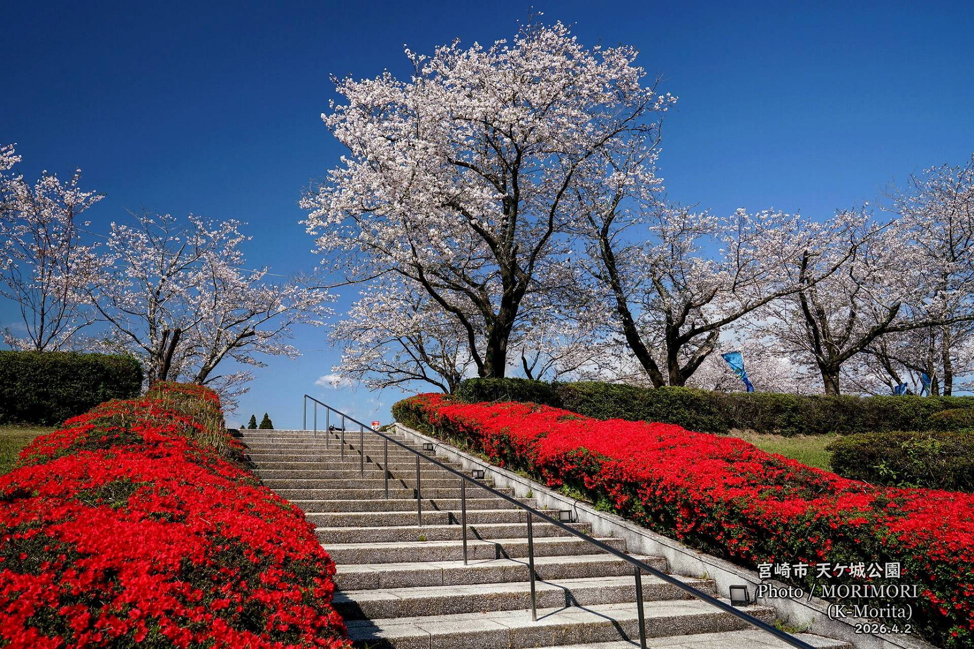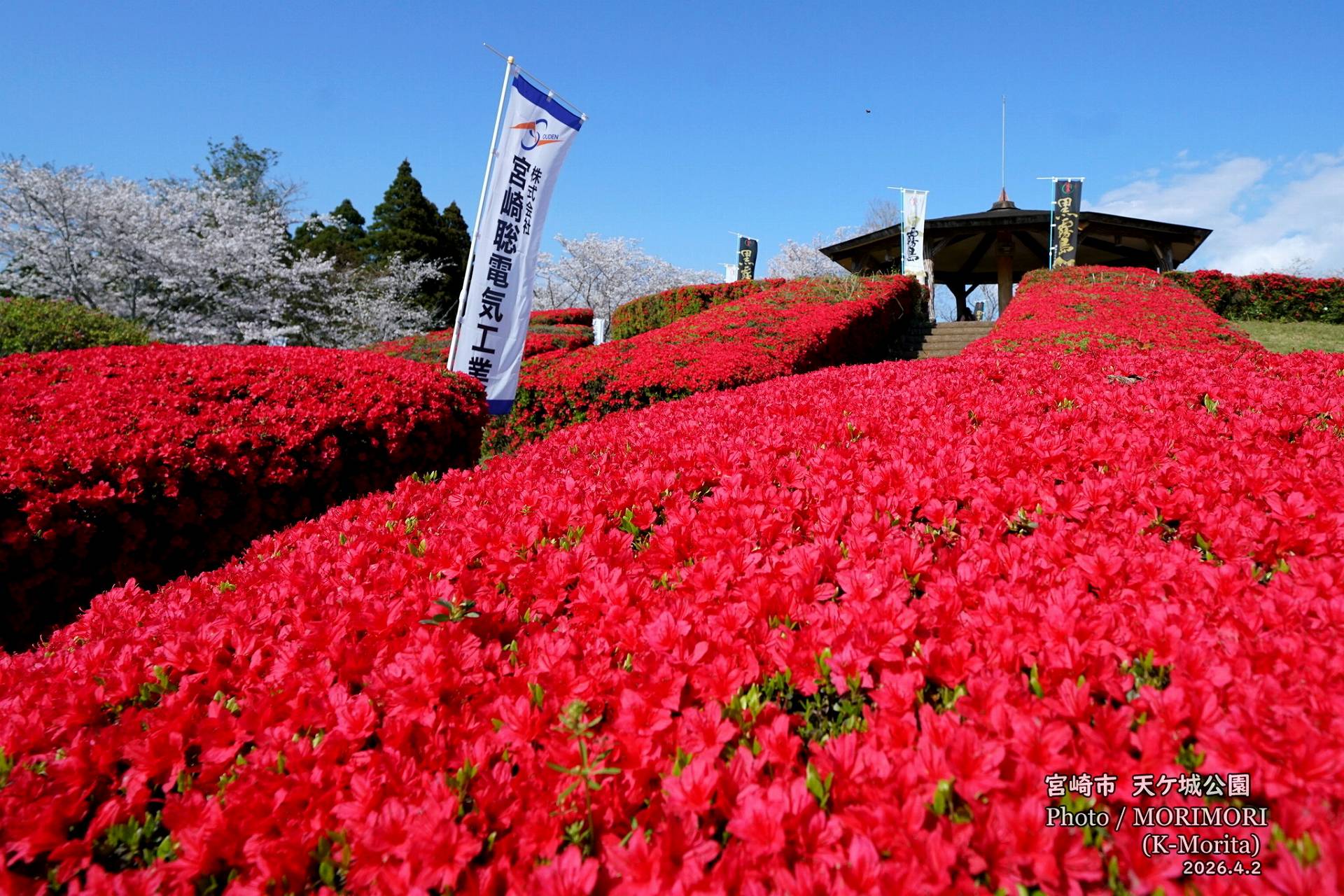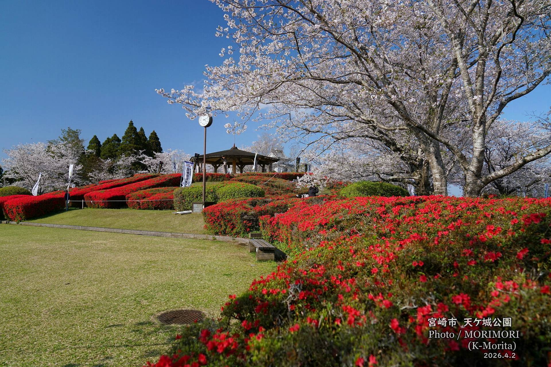 天ケ城公園 さくら広場入口の桜と霧島ツツジ
