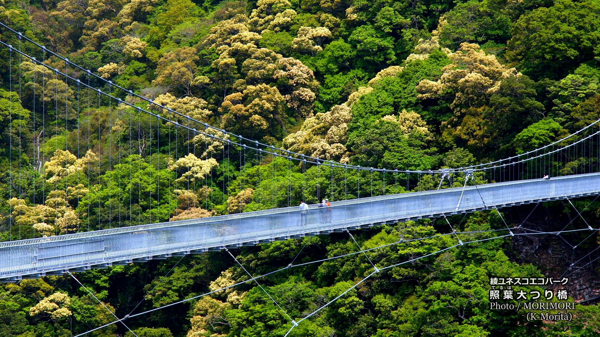 2012年に「綾ユネスコエコパーク」に登録され、世界的にも貴重な森として保護・活用されています。長さ250mの「照葉大吊橋」からの空中散歩が名所で、豊かな自然や健康づくりを楽しめます。