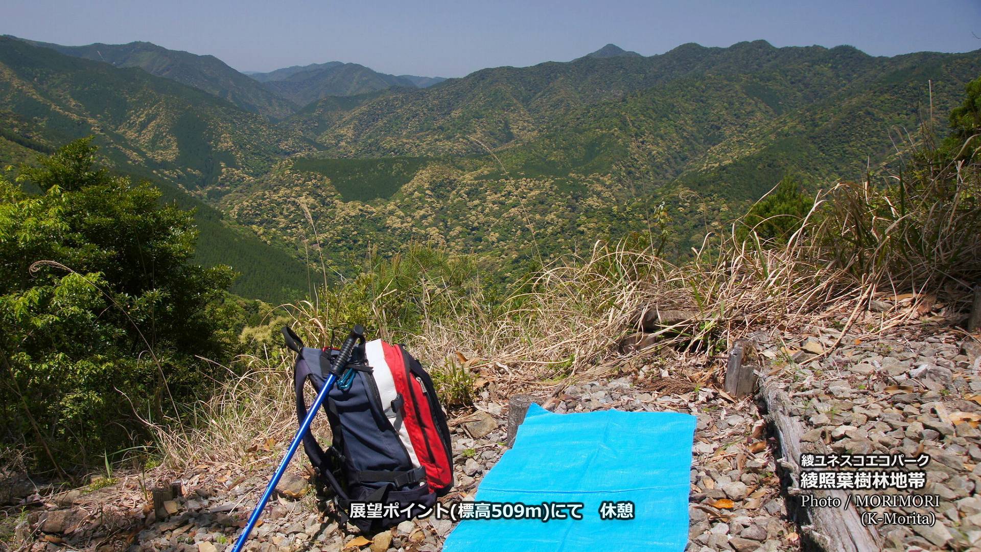 照葉樹林展望コース 展望ポイント(棒標高509m)で休憩