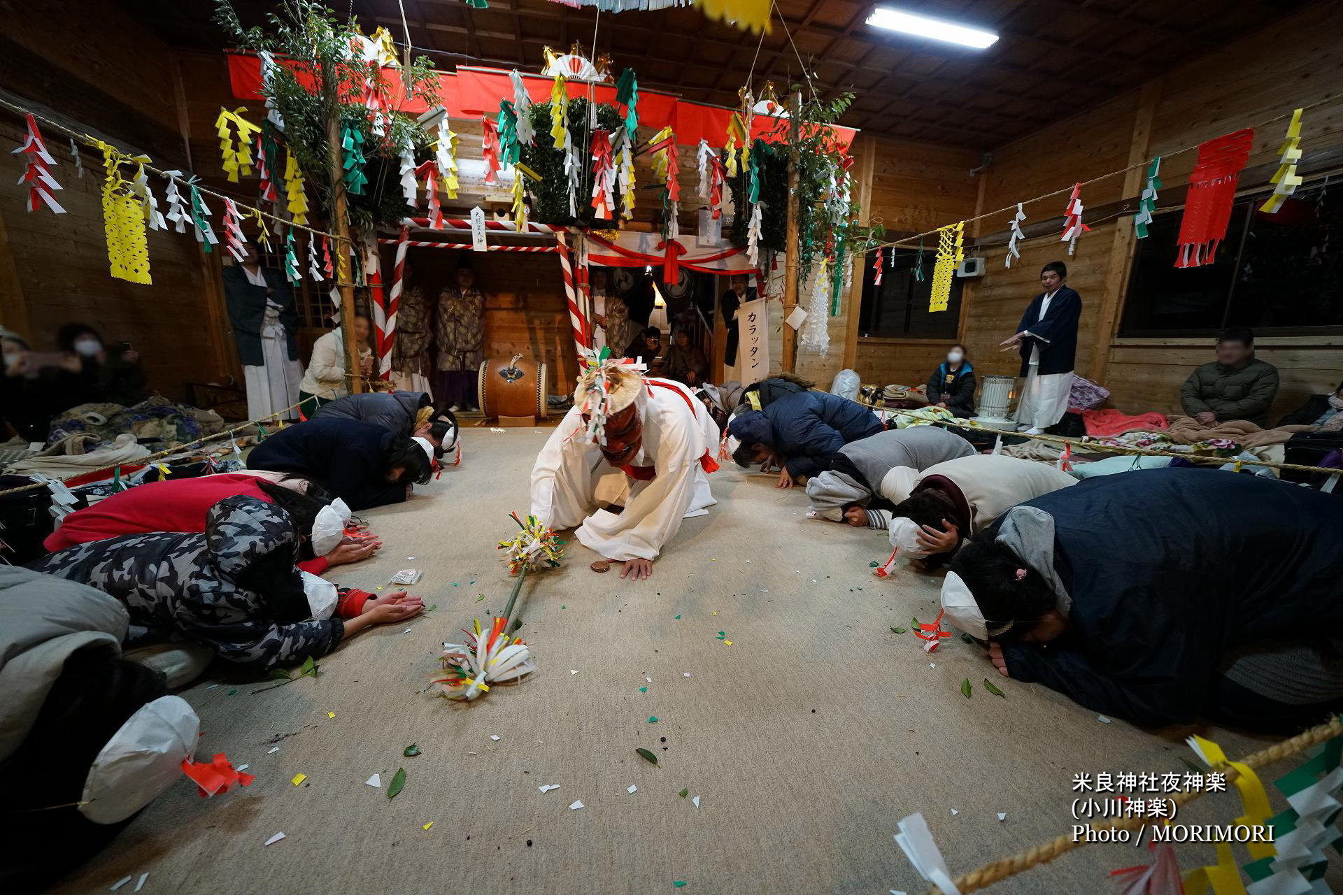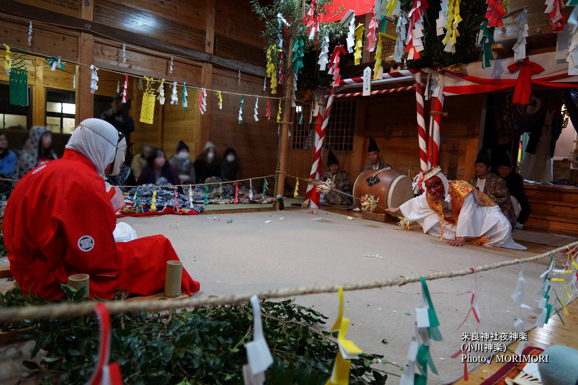神楽を舞われている方、神楽関係者以外の観客の方については、肖像権、プライバシー権の観点より、お顔が認識出来ない程度のボカシ加工を行っております。何か問題等ございましたらメールを頂ければ、すぐに対処しますのでご連絡ください。