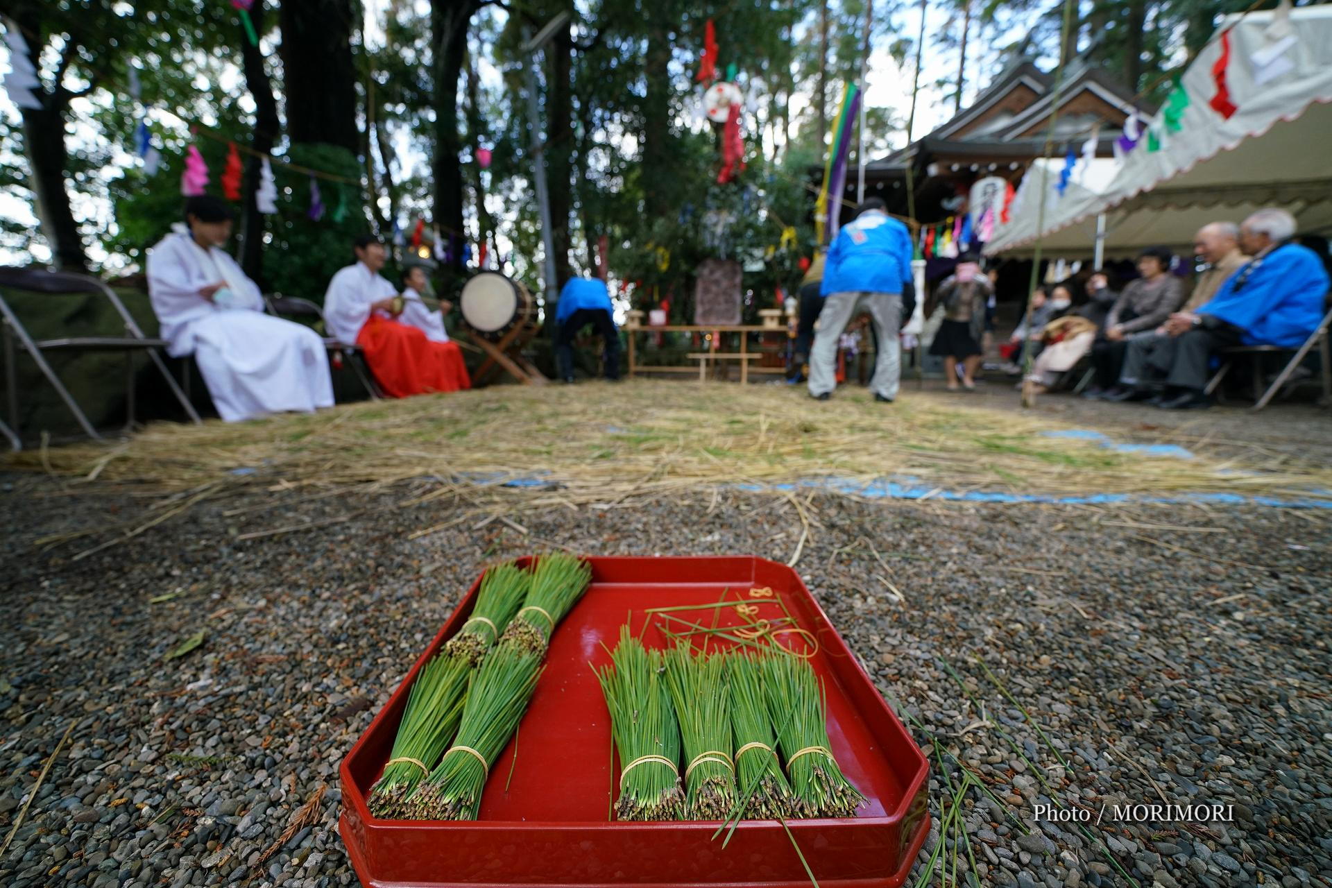 「御田植ノ儀」では、稲の苗に見たてた松の葉を参拝者参加の元植えて行きます。