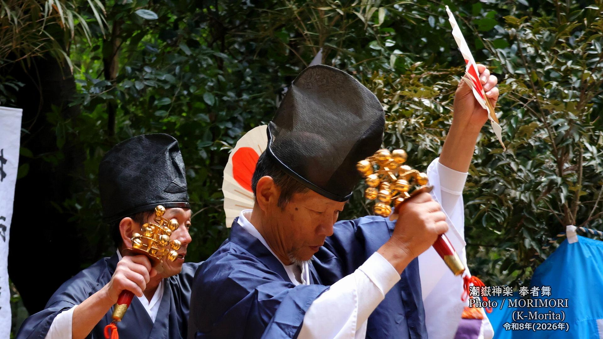 潮嶽神楽の起源については不明のようですが、文化3年(1506年)鵜戸神宮御遷宮にあたり奉納された36番の番付の記載が『潮嶽神社神事宝典』に残る。