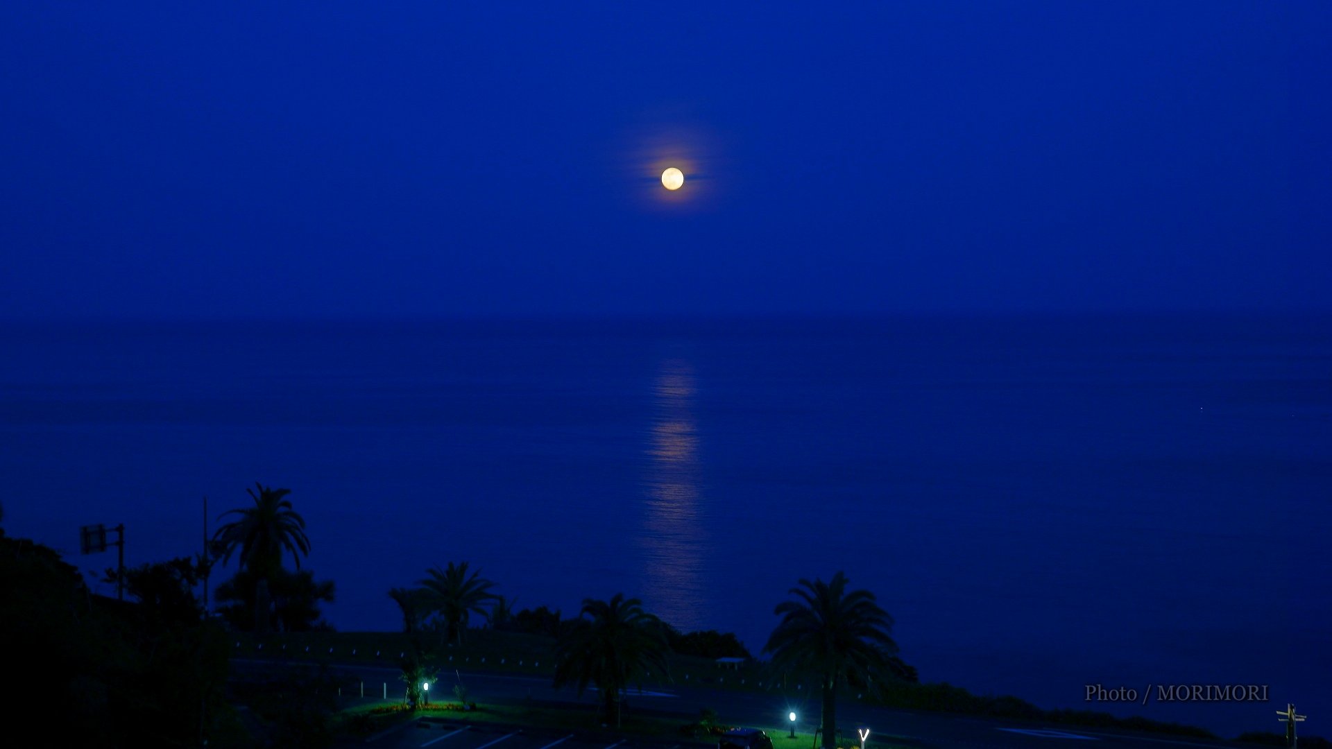 (完全に暗くなってしまうと海や周りと月のバランスがとれず、月が飽和してしまうので・・至難。)