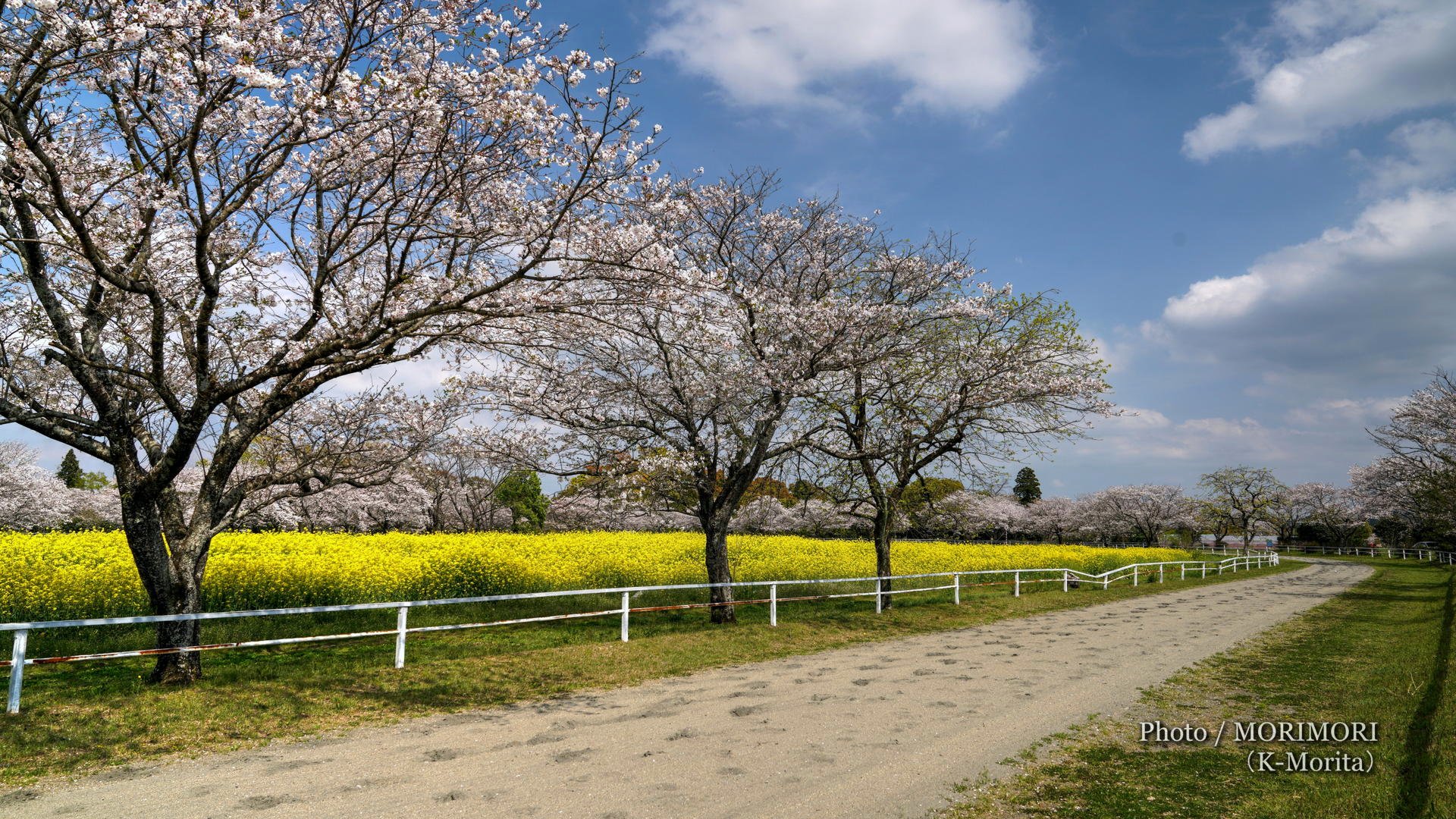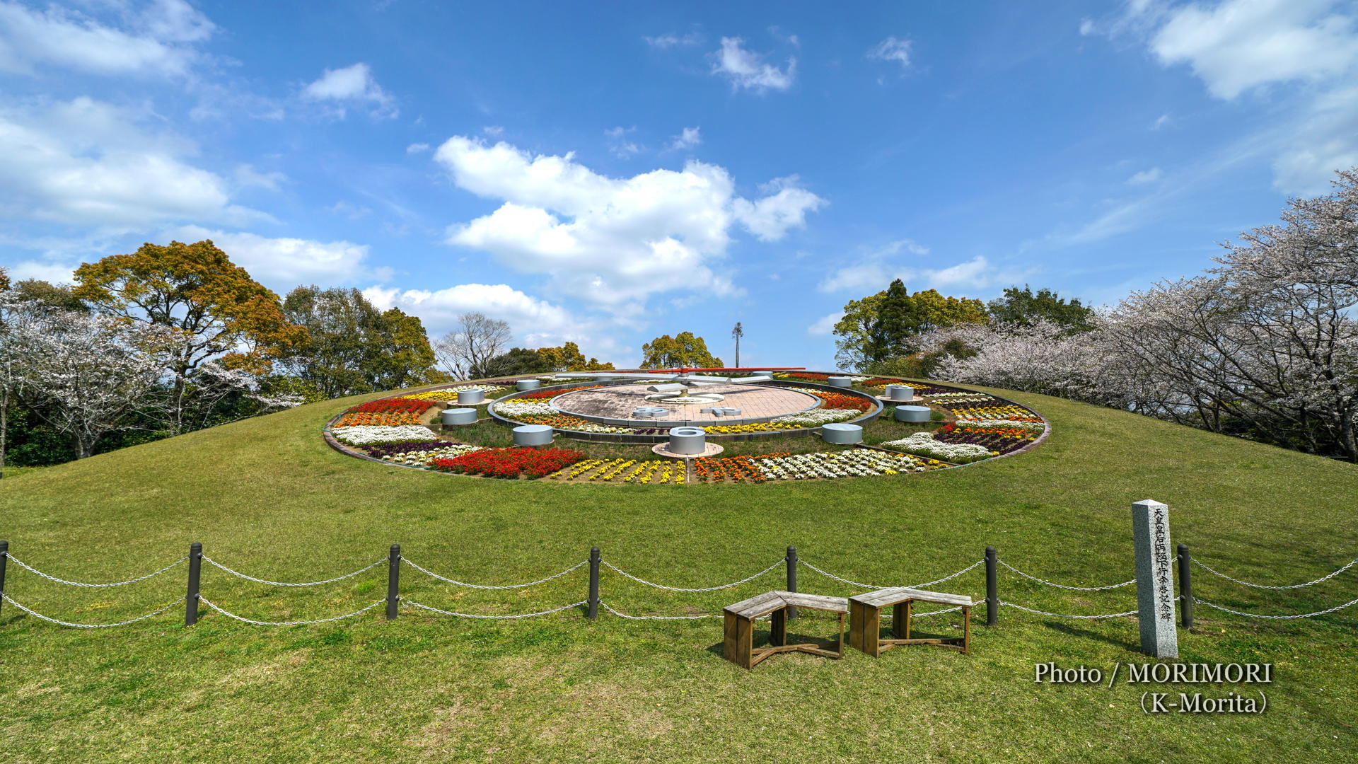 3月下旬〜4月上旬にかけて苑内では、約1,300本の桜が咲き誇る中「綾の桜まつり」を開催。約2万本の花々が彩る直径28mの花時計や競馬場内を覆い尽くすほどの菜の花が心を癒してくれます。