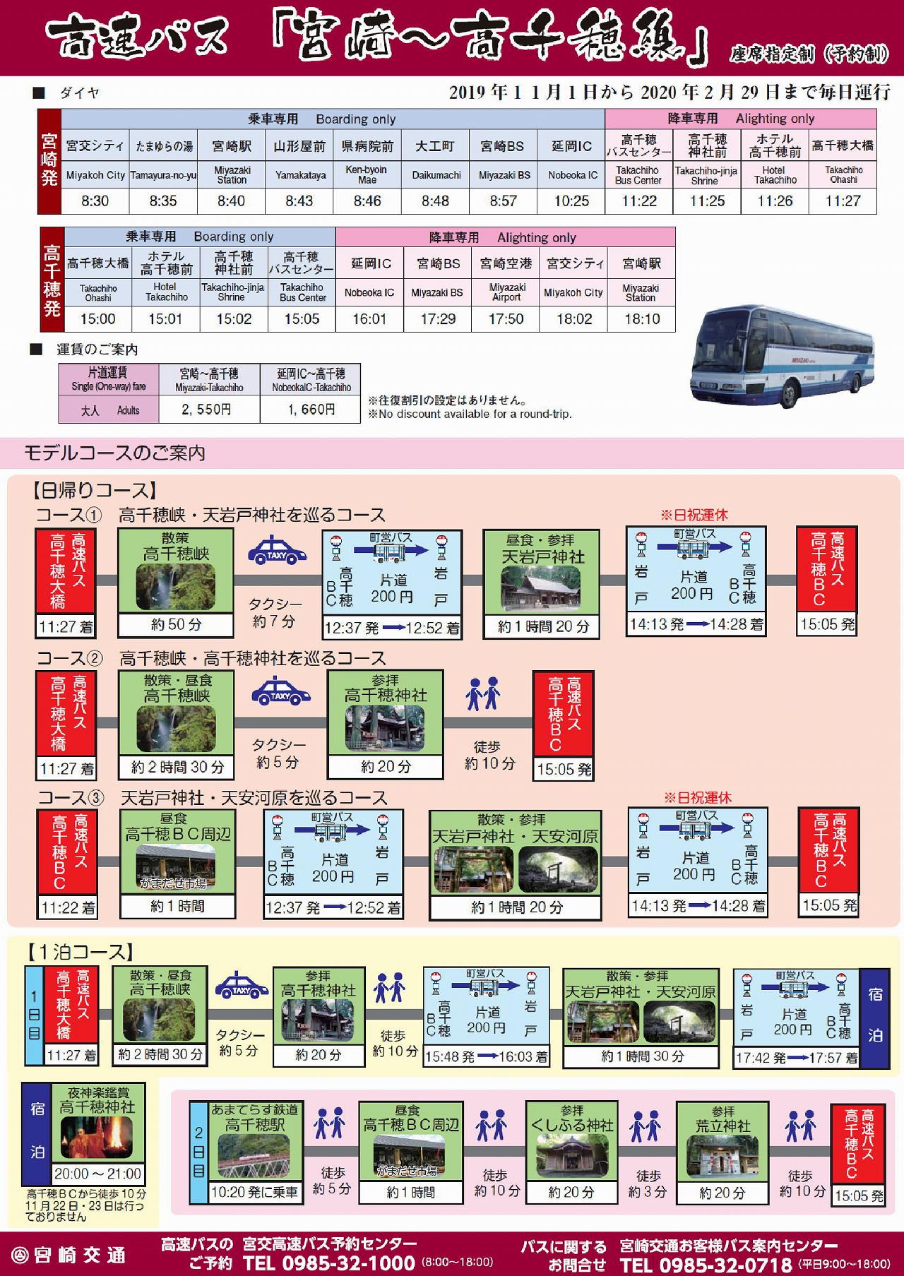 ➡ 高速バス 宮崎〜高千穂線 Highway Bus(Miyazaki-Takachiho)(宮崎交通サイト内PDF)