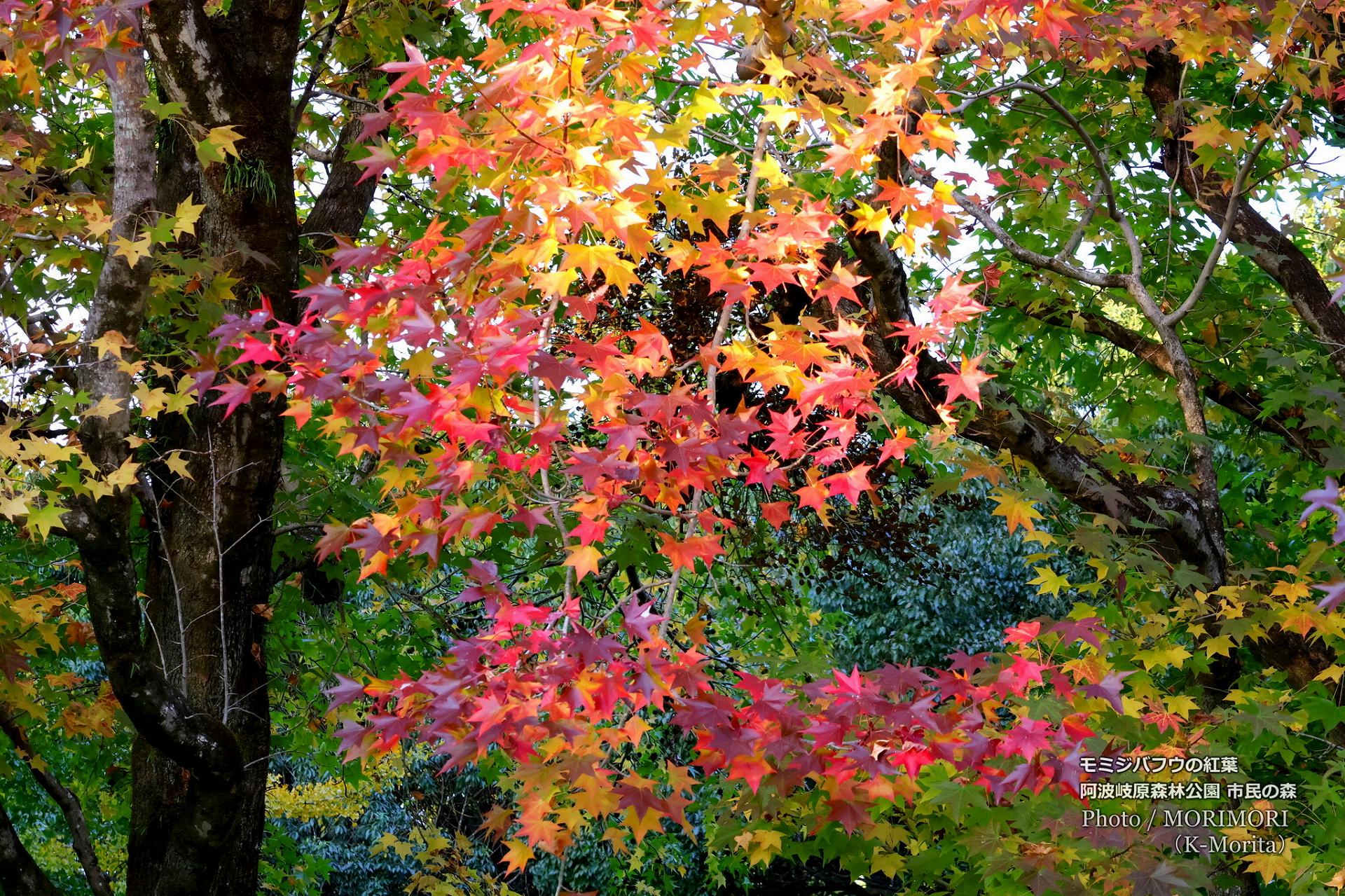 個人的には・・・「モミジバフウウ」は、緑から紅葉へ移りゆく頃が、緑・黄色・オレンジ・赤と・・色数が多く、全体的に一番華やかで見頃かなぁ・・と感じる。